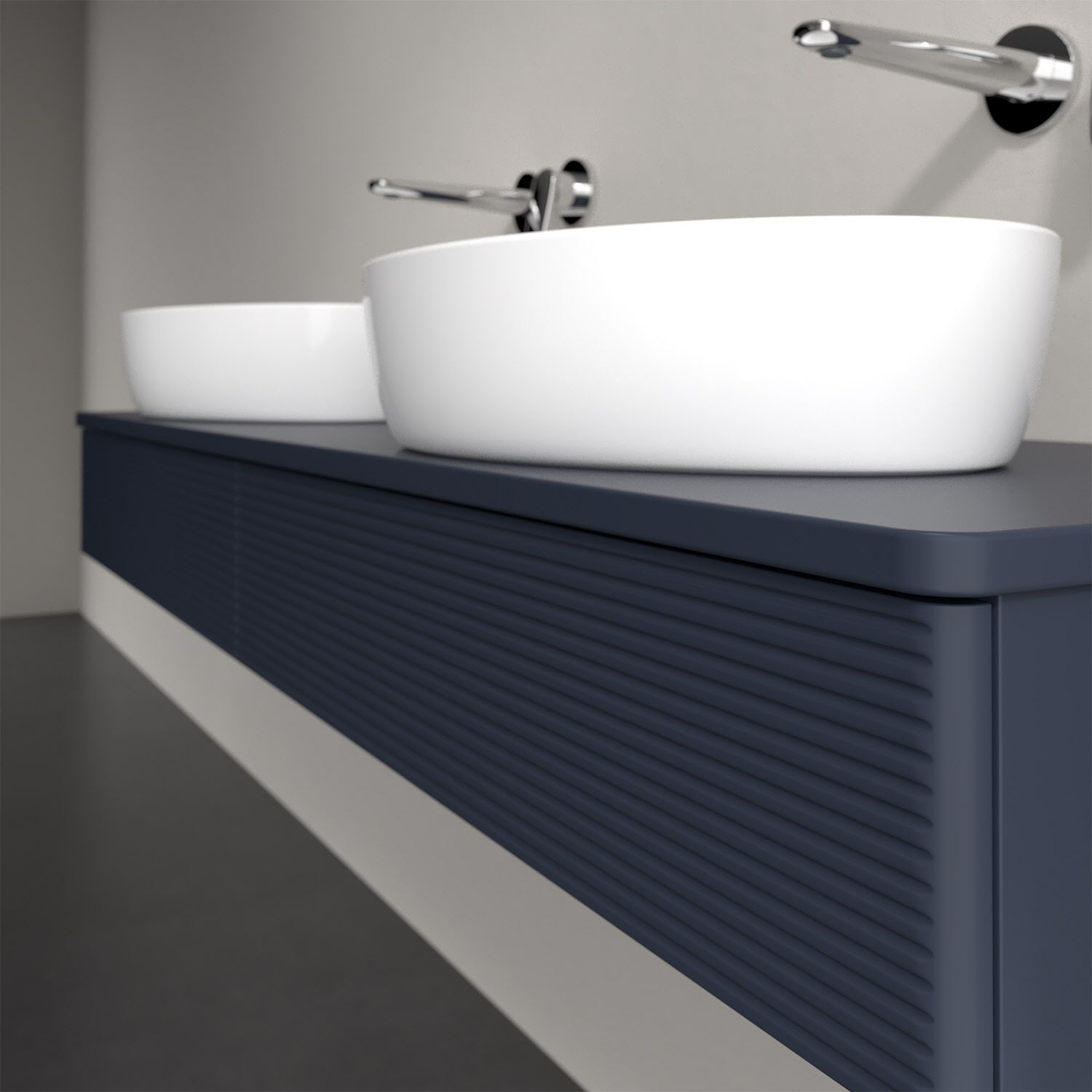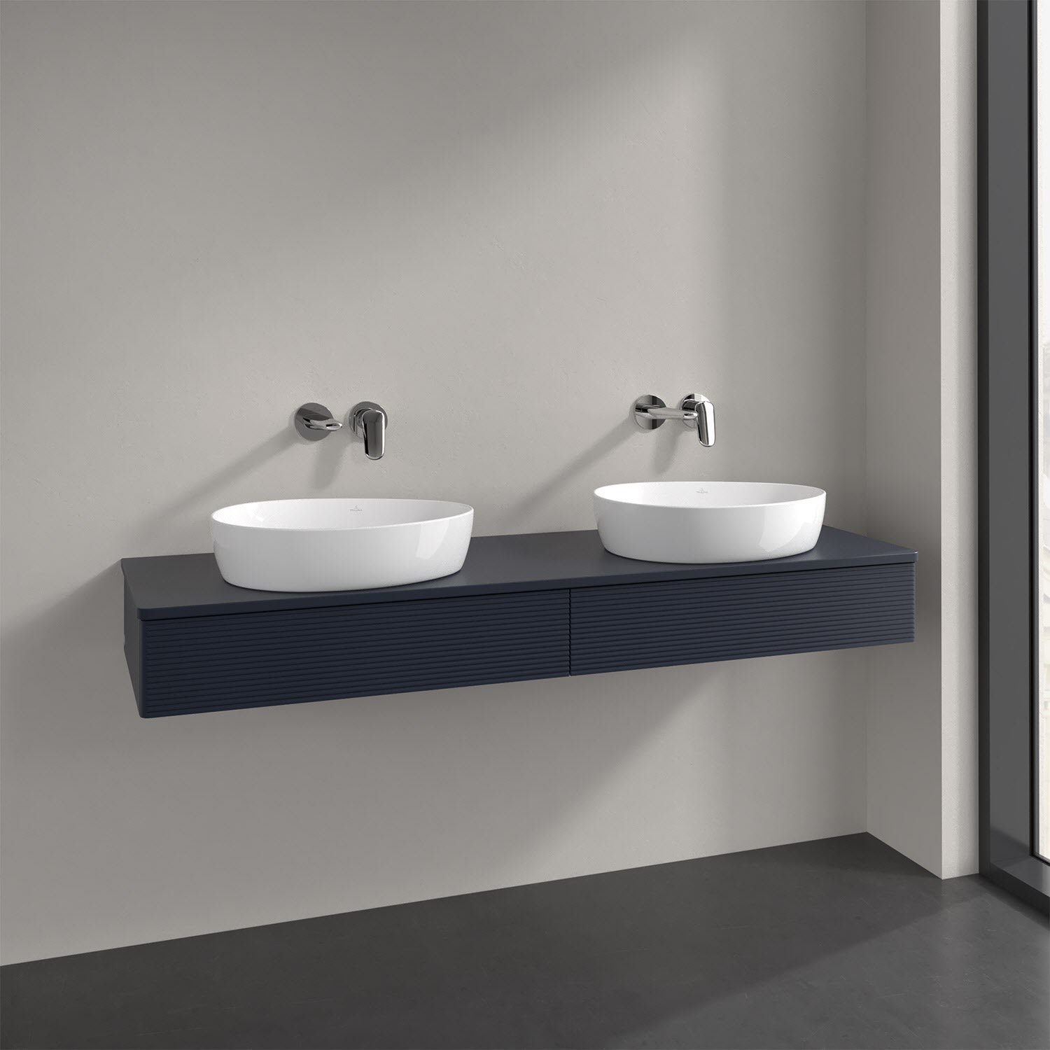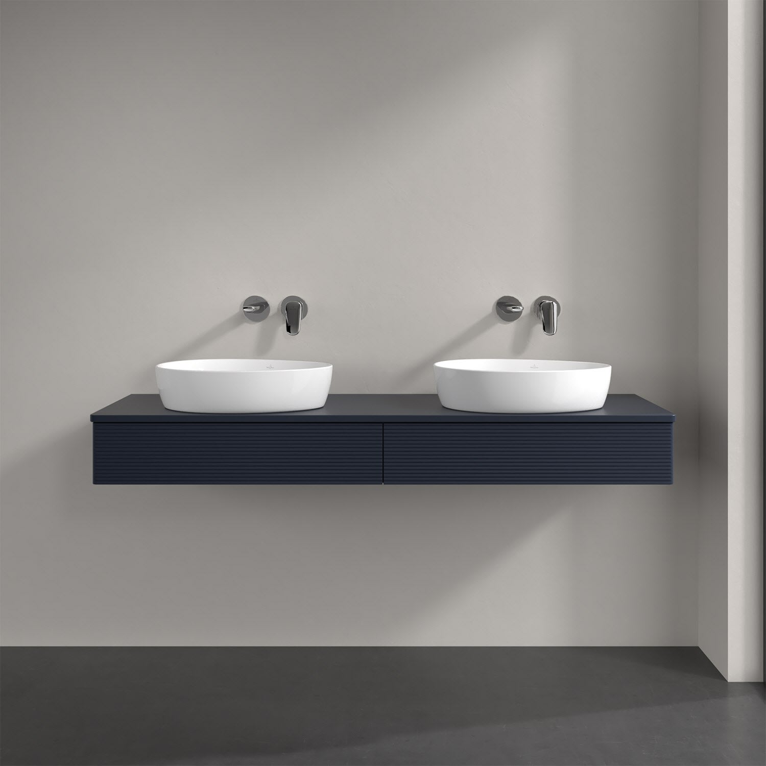 Villeroy & Boch Antao Waschbeckenunterschrank, 160 x 19 cm, 2 Auszüge mit LED-Licht, Front mit Struktur, ohne Hahnloch, für Waschtisch links und recht