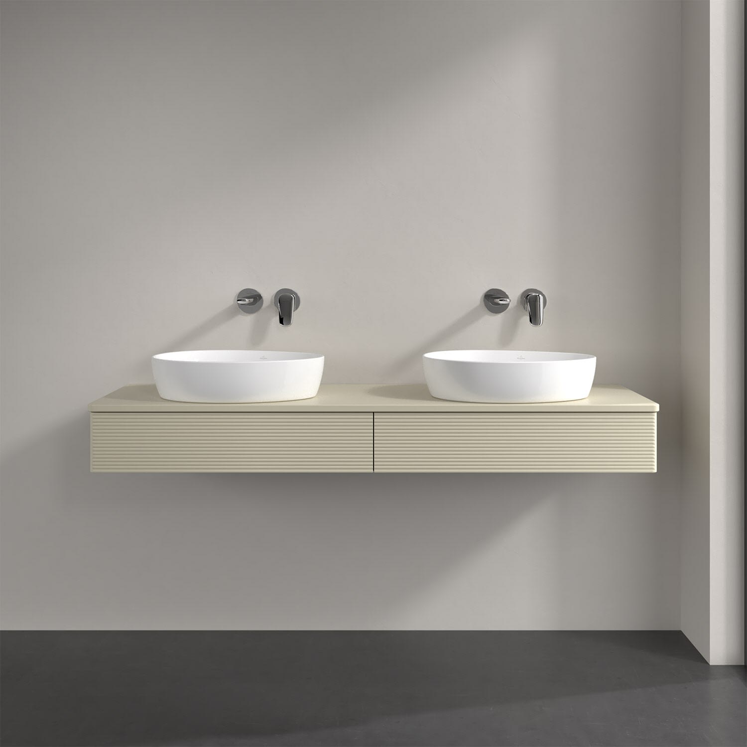 Villeroy & Boch Antao Waschbeckenunterschrank, 160 x 19 cm, 2 Auszüge mit LED-Licht, Front mit Struktur, ohne Hahnloch, für Waschtisch links und recht