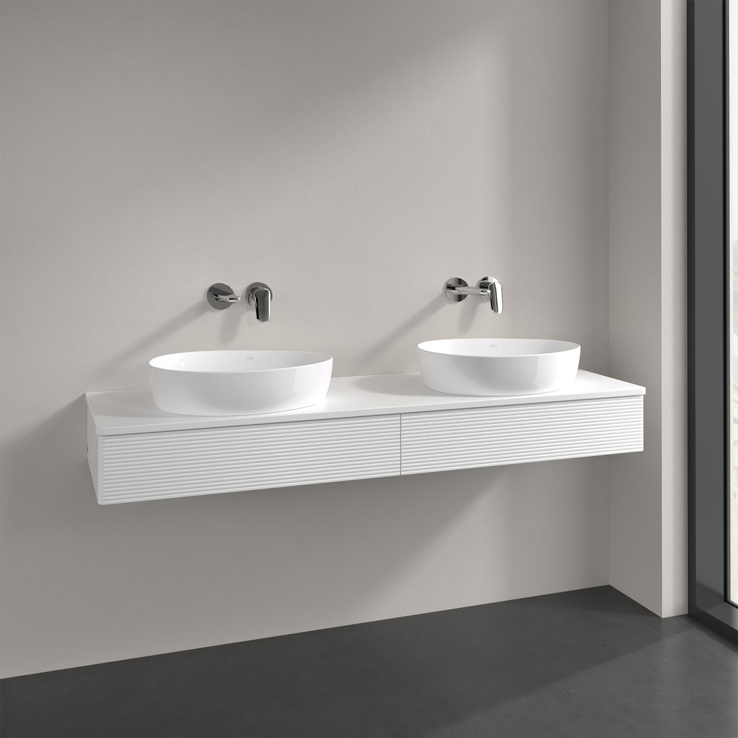 Villeroy & Boch Antao Waschbeckenunterschrank, 160 x 19 cm, 2 Auszüge mit LED-Licht, Front mit Struktur, ohne Hahnloch, für Waschtisch links und recht