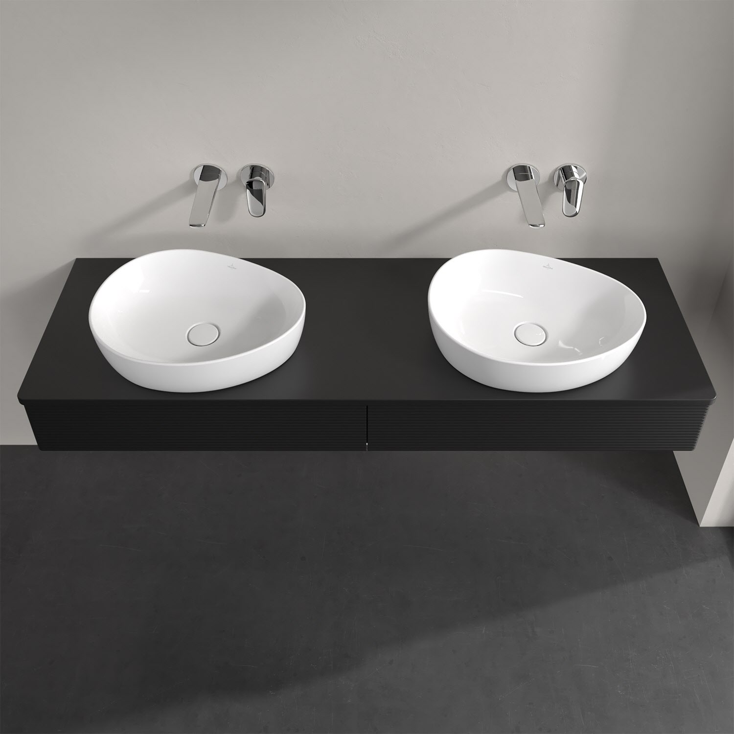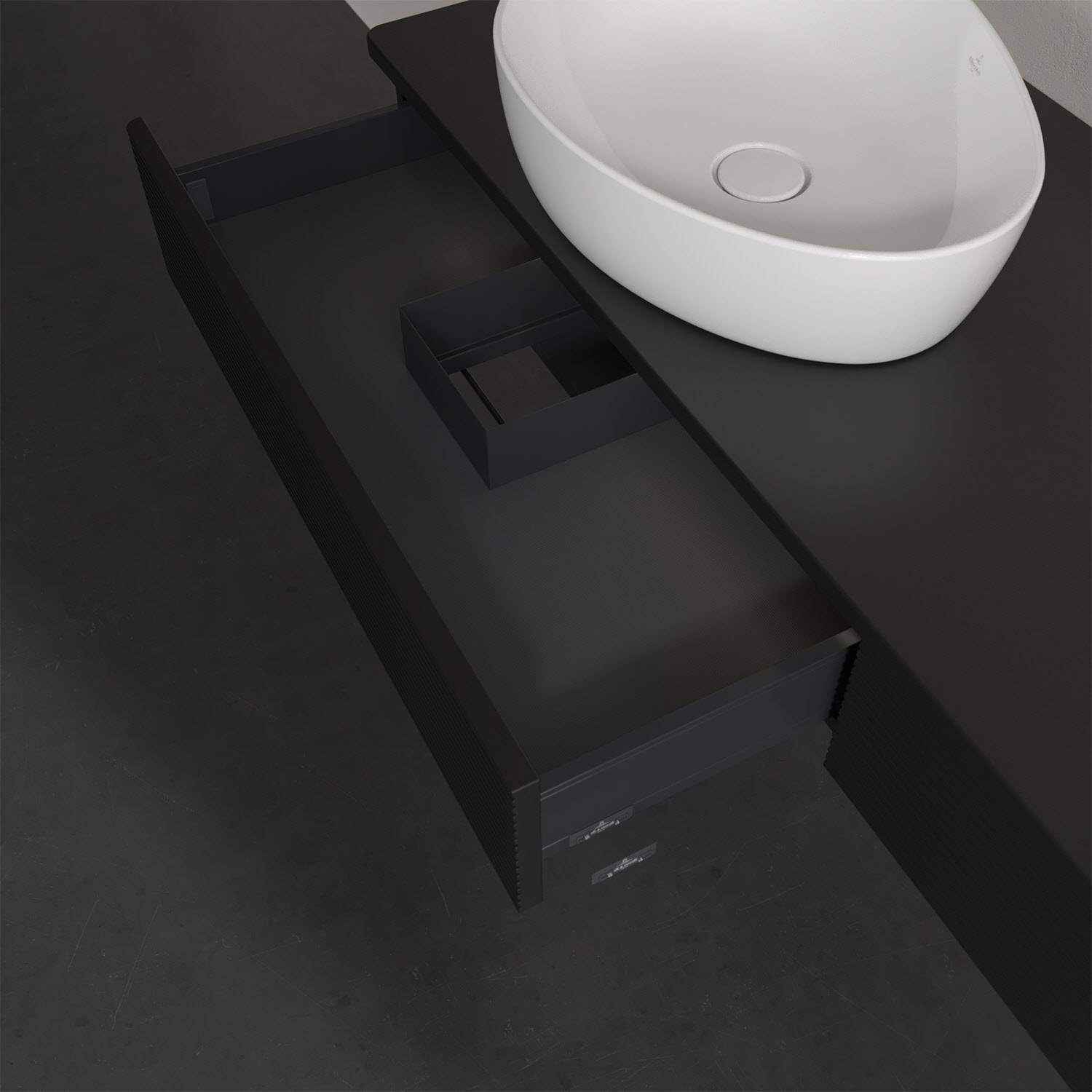 Villeroy & Boch Antao Waschbeckenunterschrank, 160 x 19 cm, 2 Auszüge mit LED-Licht, Front mit Struktur, ohne Hahnloch, für Waschtisch links und recht