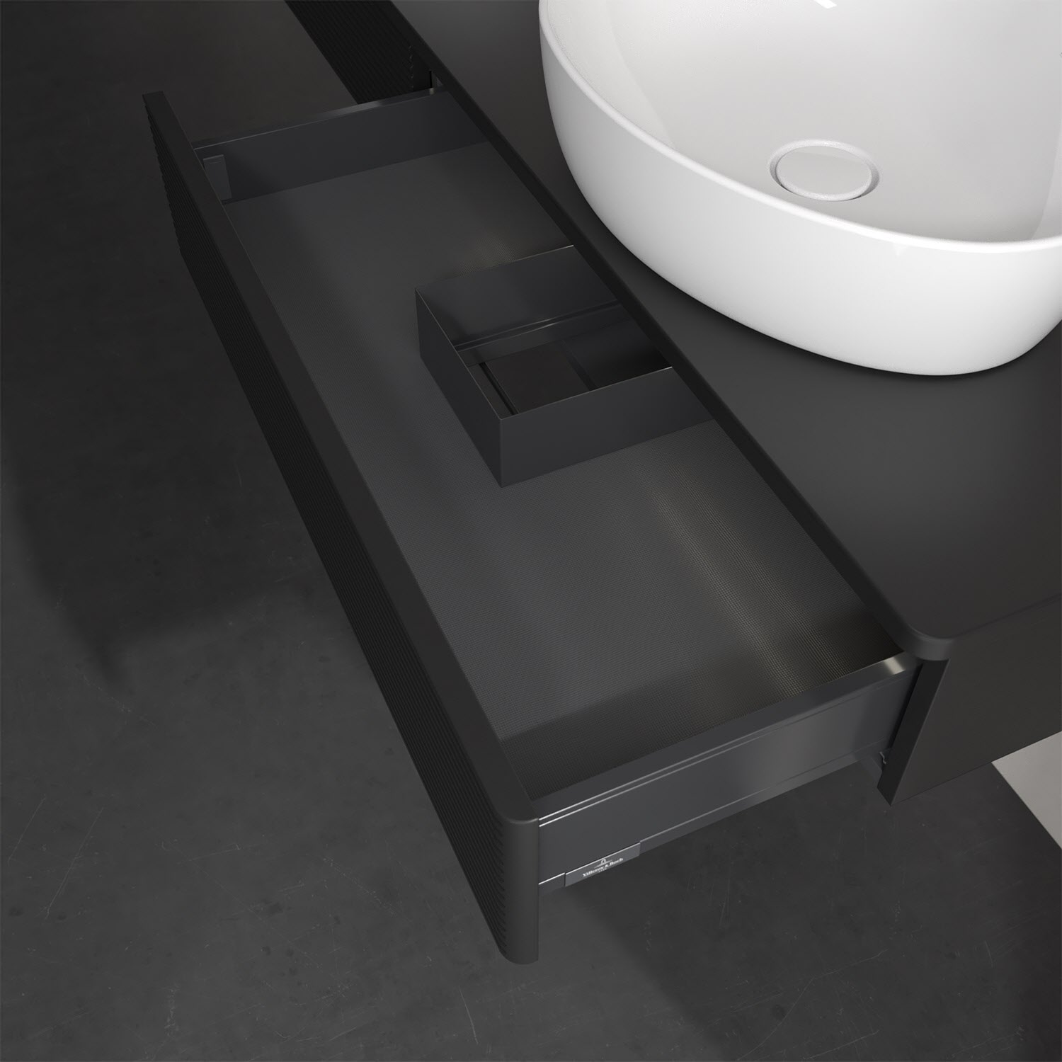 - kein Umfallen oder Verrutschen von Pflegeprodukten in den Schubladen dank rutschhemmendem Boden