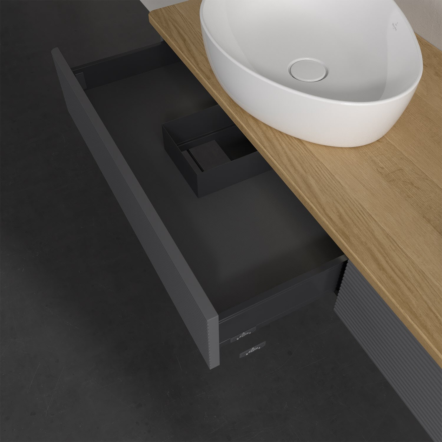 Villeroy & Boch Antao Waschbeckenunterschrank, 160 x 19 cm, 2 Auszüge mit LED-Licht, Front mit Struktur, ohne Hahnloch, für Waschtisch links und recht