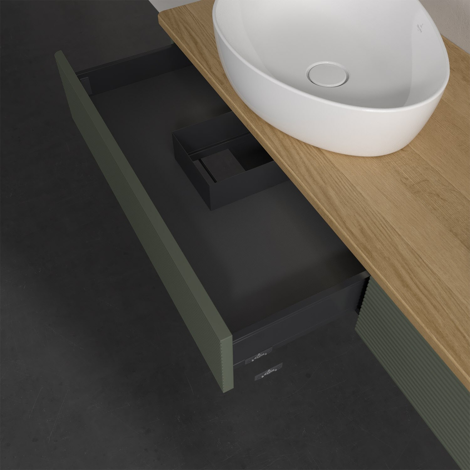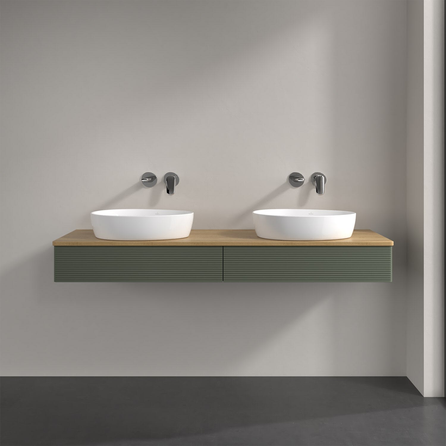 Villeroy & Boch Antao Waschbeckenunterschrank, 160 x 19 cm, 2 Auszüge mit LED-Licht, Front mit Struktur, ohne Hahnloch, für Waschtisch links und recht