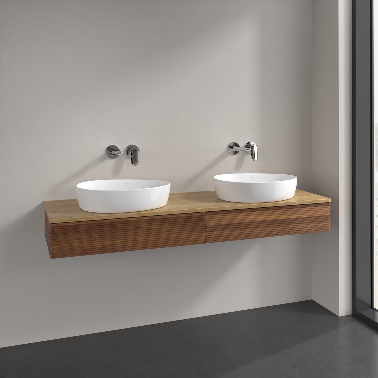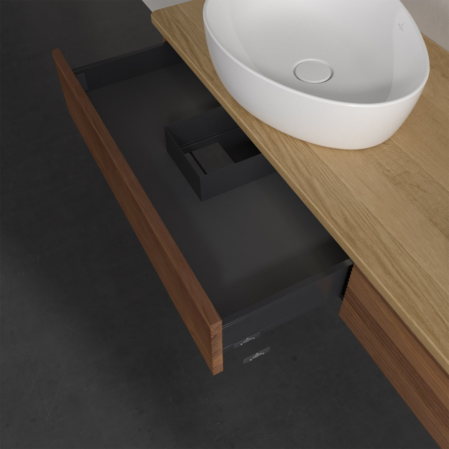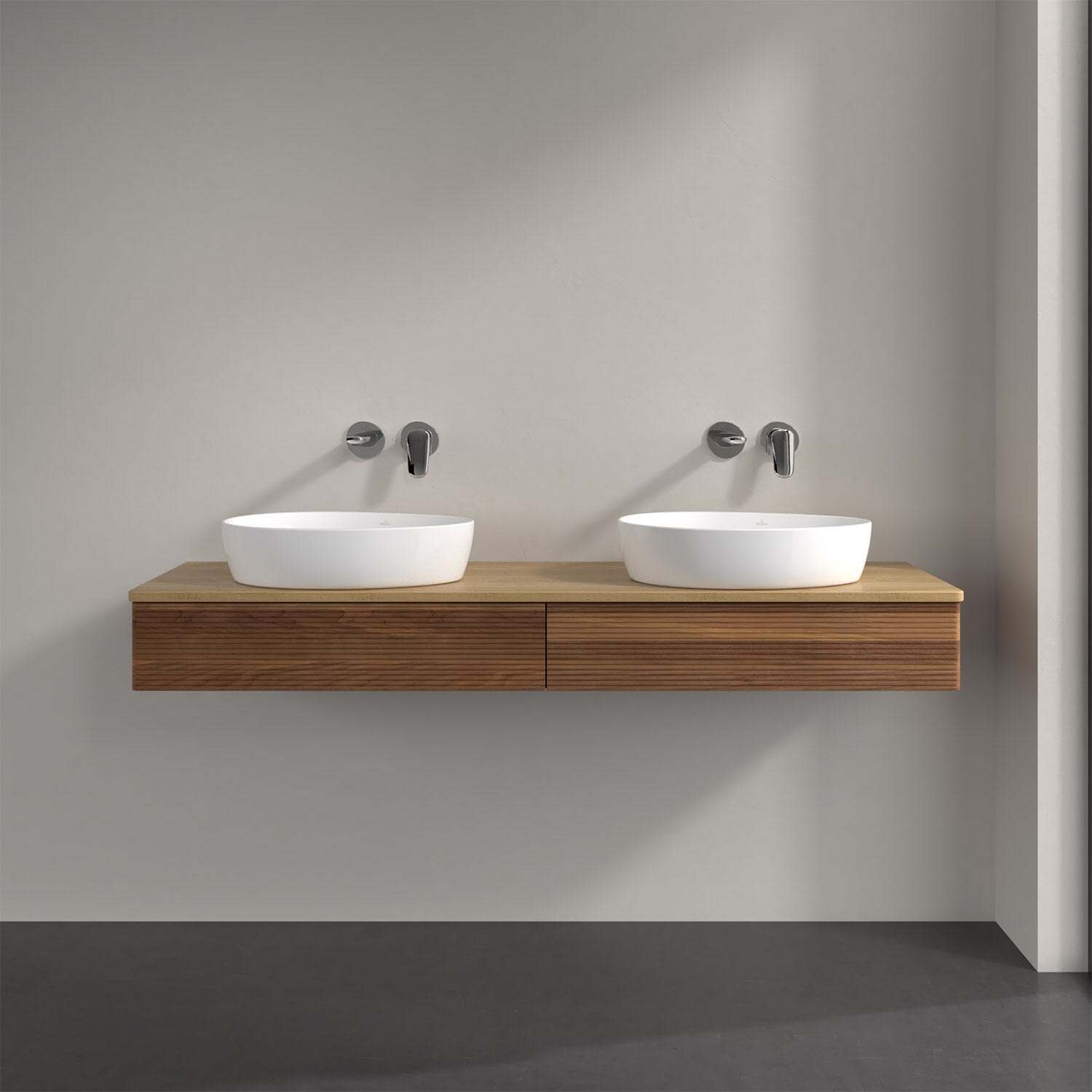 Villeroy & Boch Antao Waschbeckenunterschrank, 160 x 19 cm, 2 Auszüge mit LED-Licht, Front mit Struktur, ohne Hahnloch, für Waschtisch links und recht
