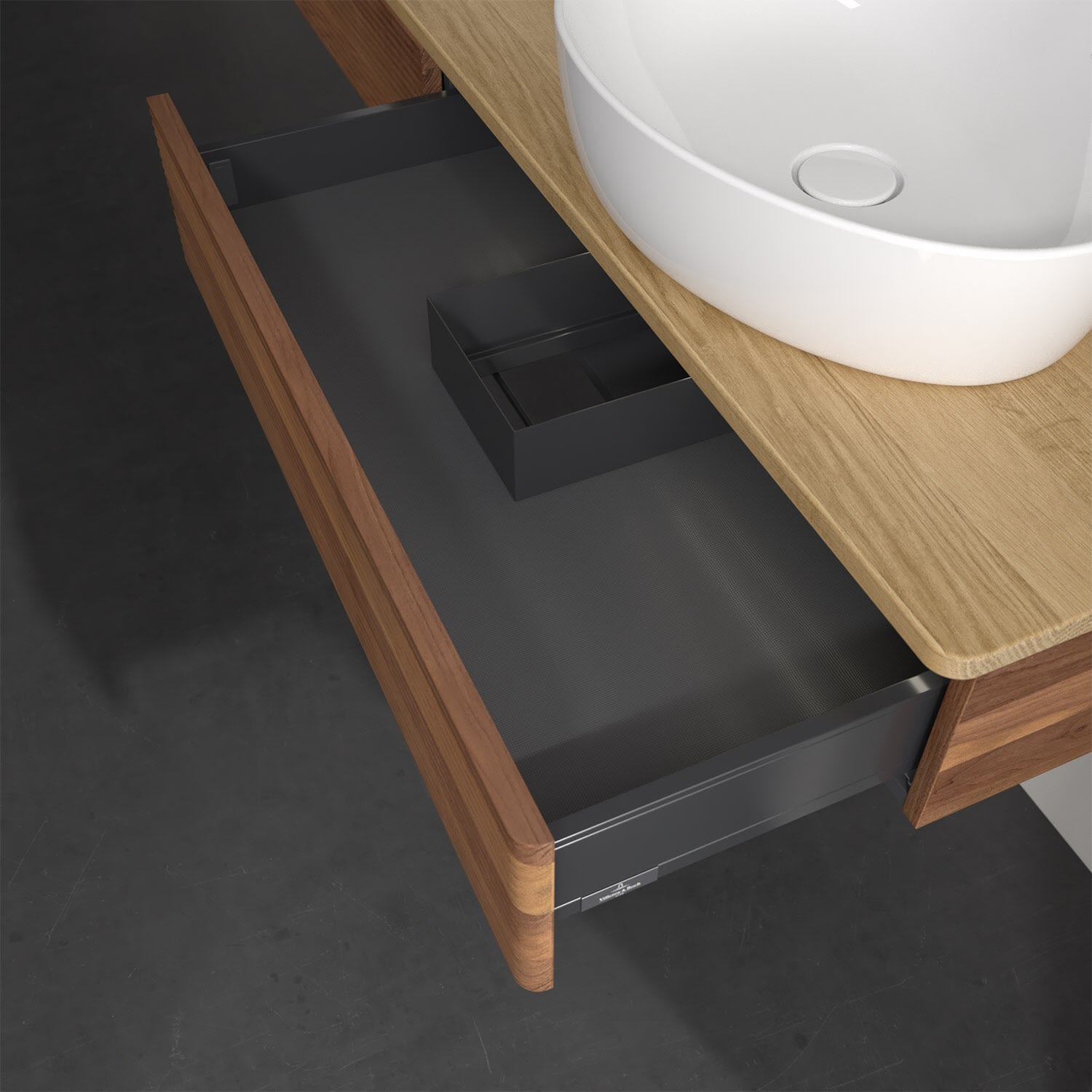 - kein Umfallen oder Verrutschen von Pflegeprodukten in den Schubladen dank rutschhemmendem Boden