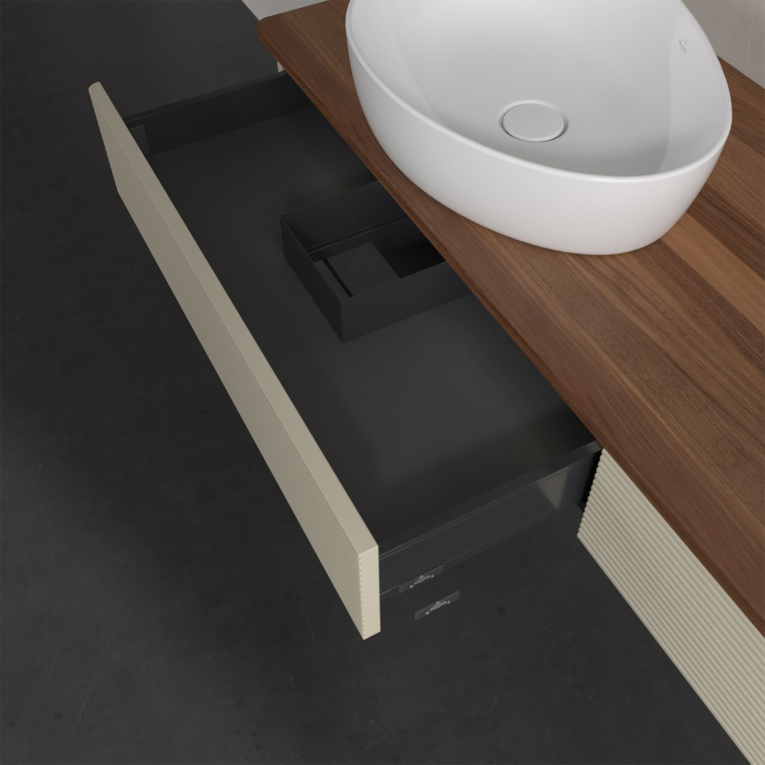 - kein Umfallen oder Verrutschen von Pflegeprodukten in den Schubladen dank rutschhemmendem Boden