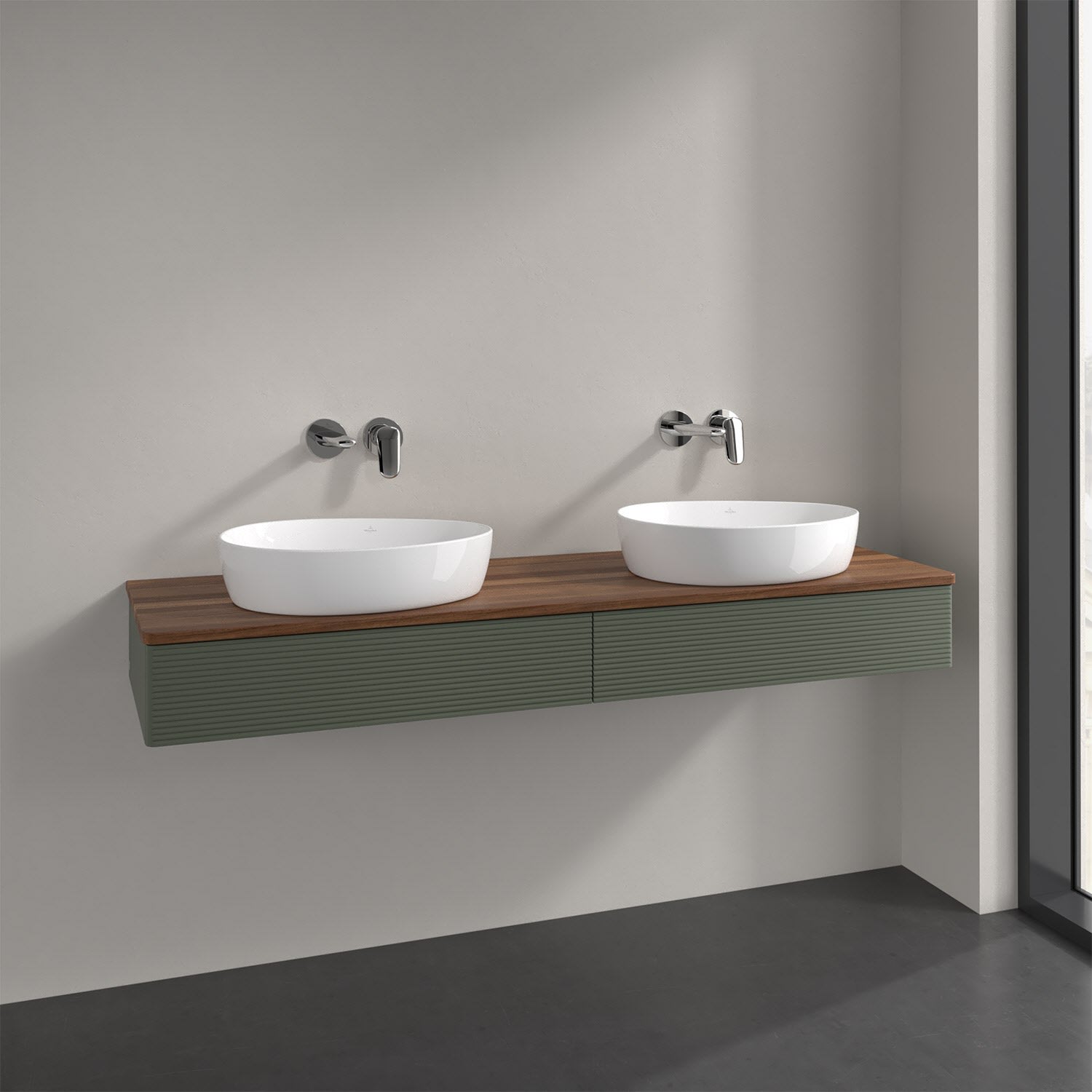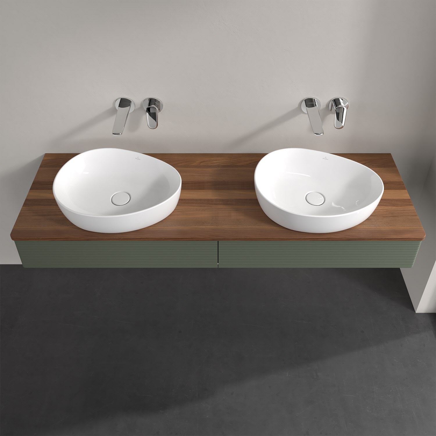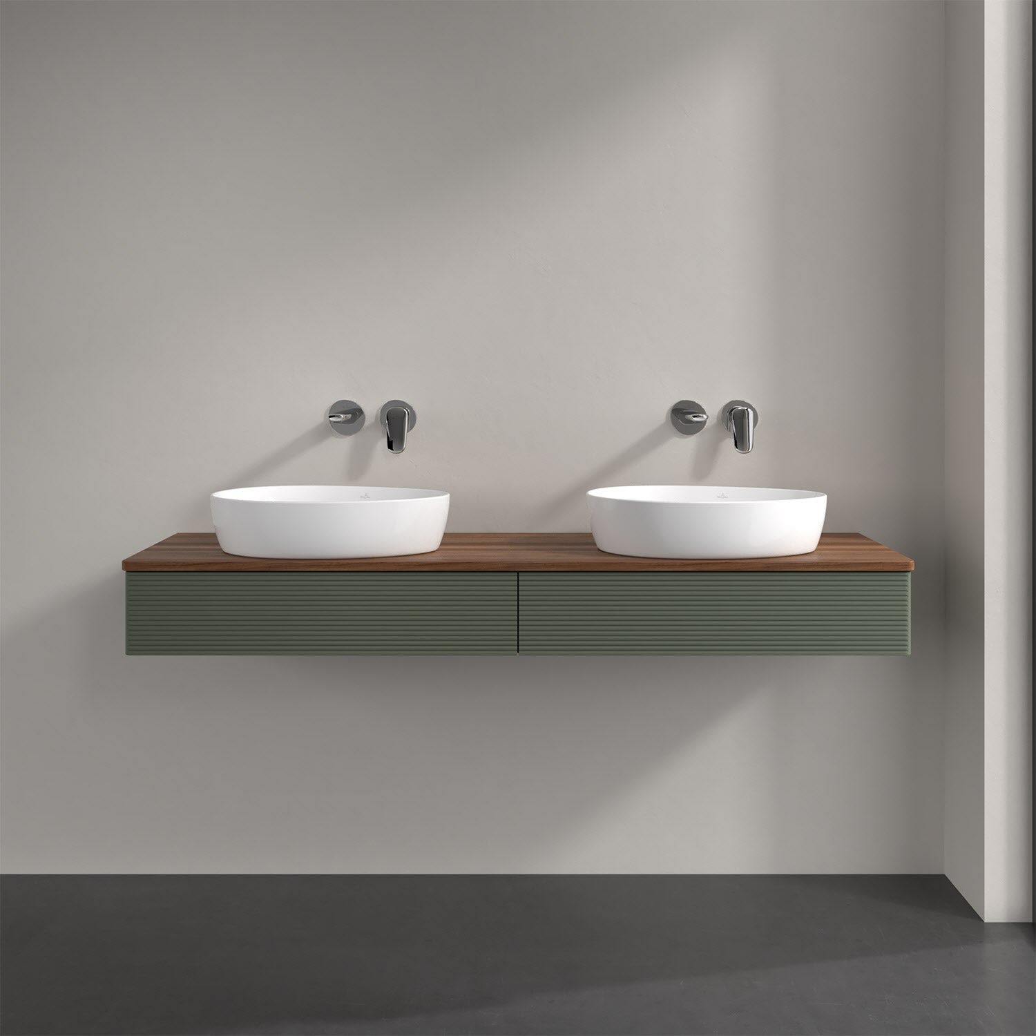 Der wandhängende Antao Waschtischunterschrank für zwei Aufsatzwaschtische bietet mit seinen beiden Auszügen und seiner erstaunlichen Größe viel Platz zum Verstauen von Utensilien im Badezimmer. Inspiriert von der Natur überzeugt der Unterschrank auch optisch mit sanfter Formsprache und abgerundete Kanten. Die grifflosen Auszüge mit strukturierter Front sind mit der Push-to-Open Funktion ausgestattet und verfügen über einen Antirutschboden, damit Utensilien sicher verstaut werden können. Den Überblick behält man dank der warmweißen Auszugsbeleuchtung, die sich automatisch beim Öffnen einschaltet. Mit seiner Vollauszug- und Selbsteinzug-Funktion ist der Schrank einfach praktisch und leicht zu bedienen. Qualität von Villeroy & Boch! Für eine besonders leichte Pflege sorgt die mehrschichtig deckend lackierte Oberfläche. Bei der Ausführung in Massivholz wird dank des verarbeiteten Massivholzes jedes Möbel zu einem Unikat, das sich durch das lebendige Naturmaterial durch seine einzigartige Struktur und Maserung auszeichnet.