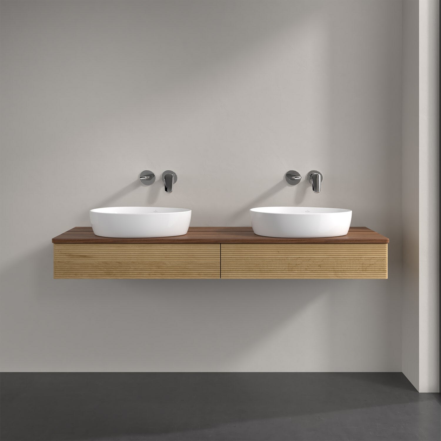 Villeroy & Boch Antao Waschbeckenunterschrank, 160 x 19 cm, 2 Auszüge mit LED-Licht, Front mit Struktur, ohne Hahnloch, für Waschtisch links und recht