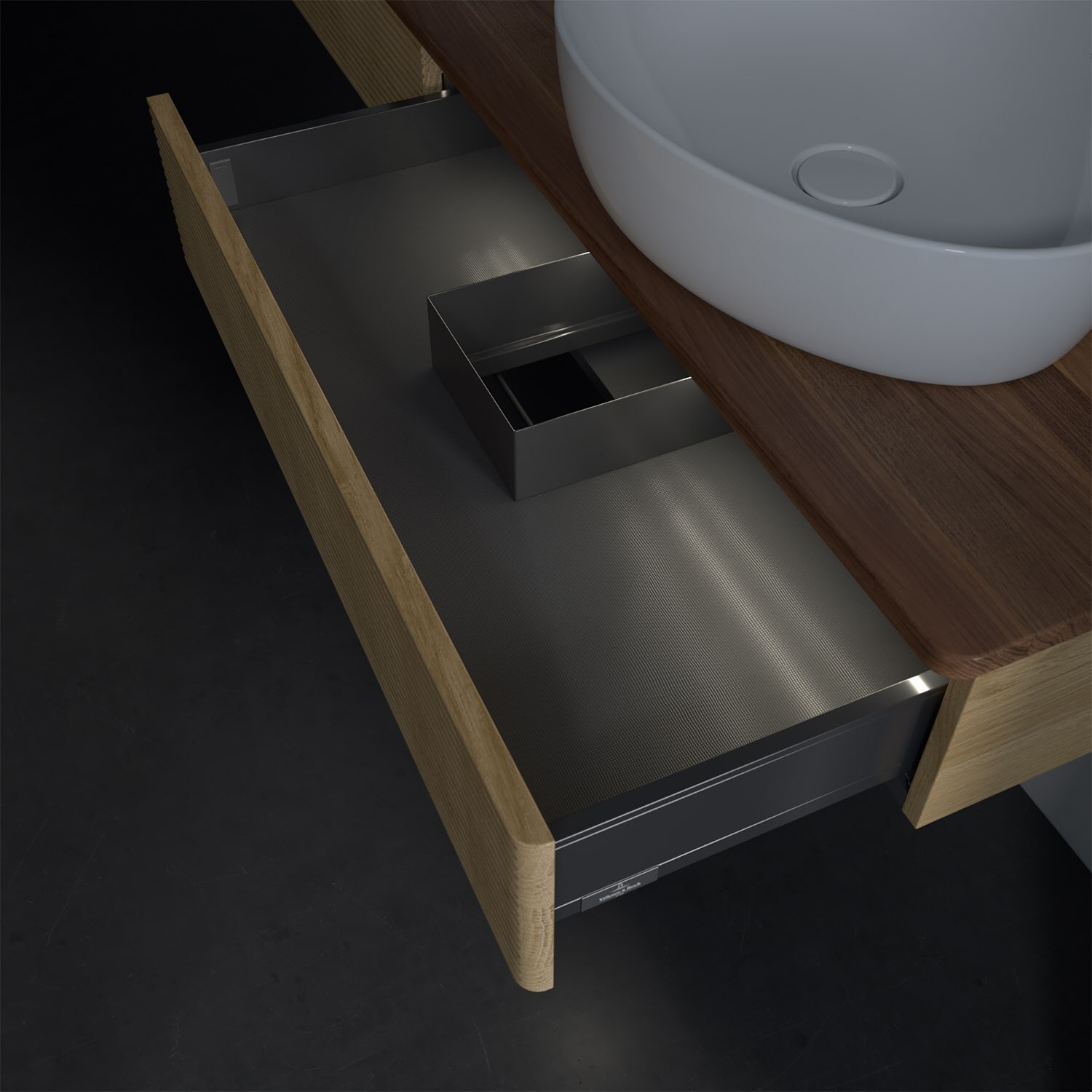 - kein Umfallen oder Verrutschen von Pflegeprodukten in den Schubladen dank rutschhemmendem Boden