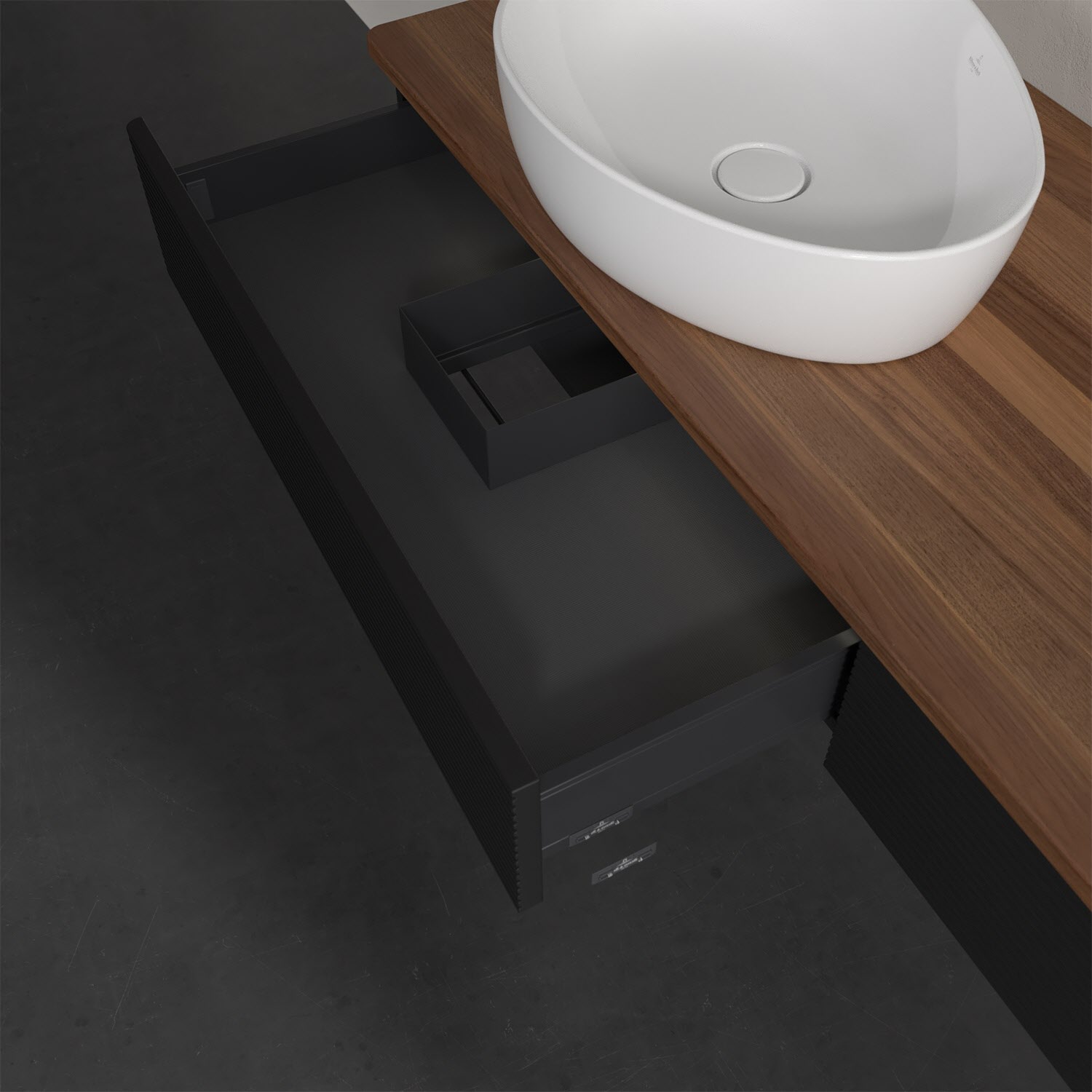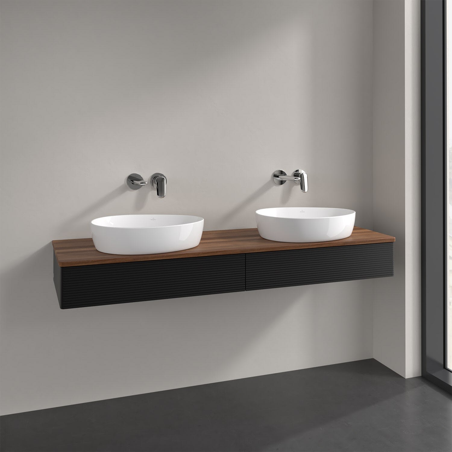 Villeroy & Boch Antao Waschbeckenunterschrank, 160 x 19 cm, 2 Auszüge mit LED-Licht, Front mit Struktur, ohne Hahnloch, für Waschtisch links und recht