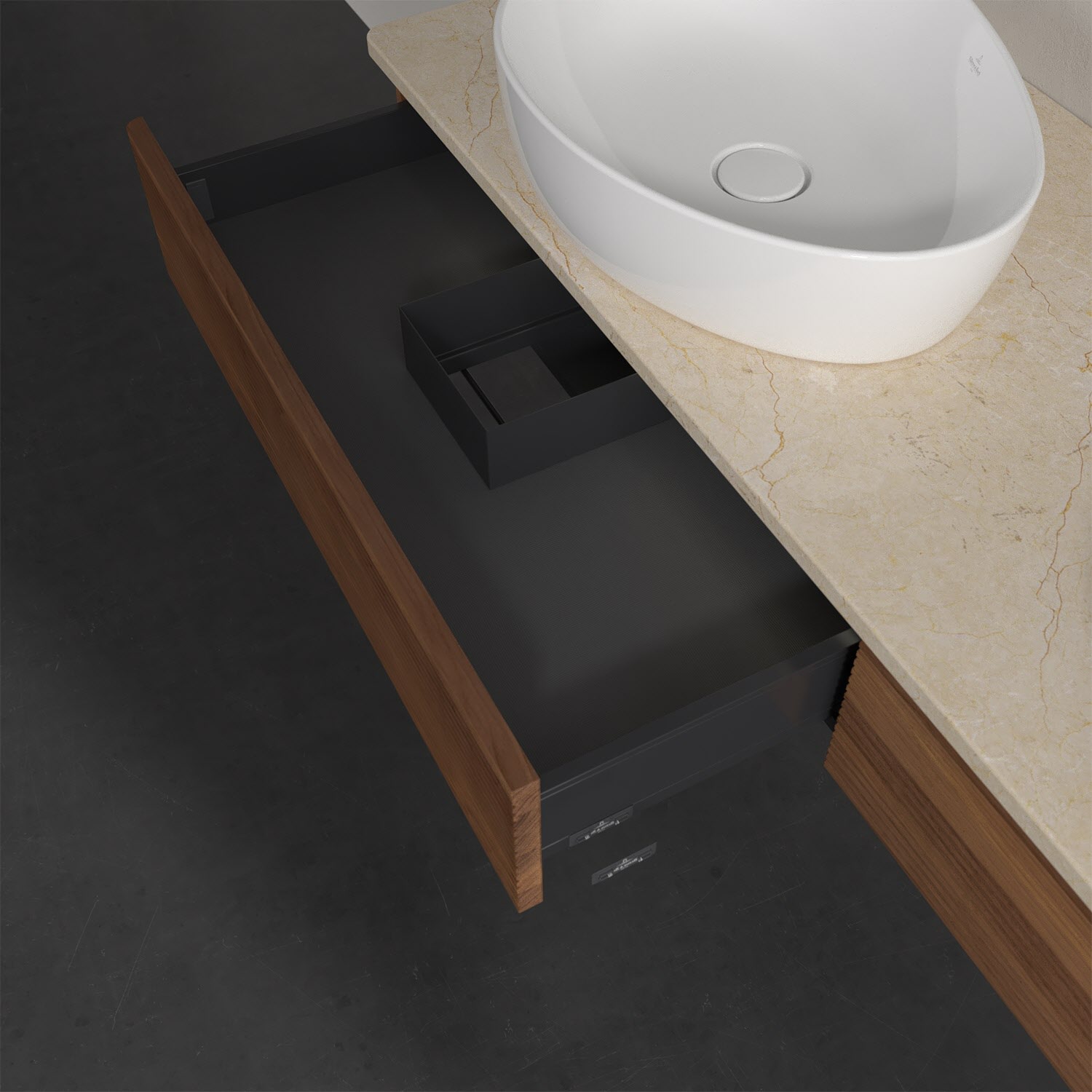 Villeroy & Boch Antao Waschbeckenunterschrank, 160 x 19 cm, 2 Auszüge mit LED-Licht, Front mit Struktur, ohne Hahnloch, für Waschtisch links und recht