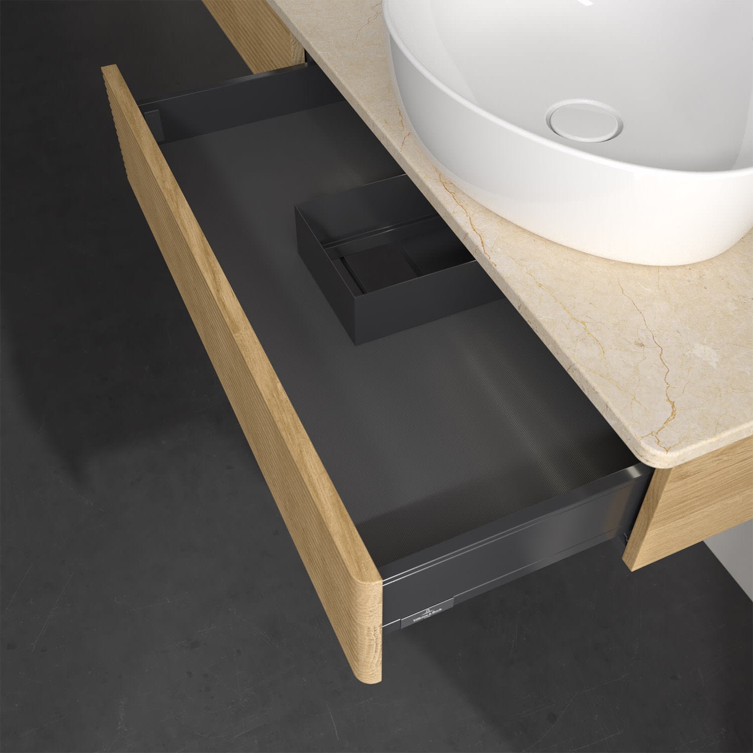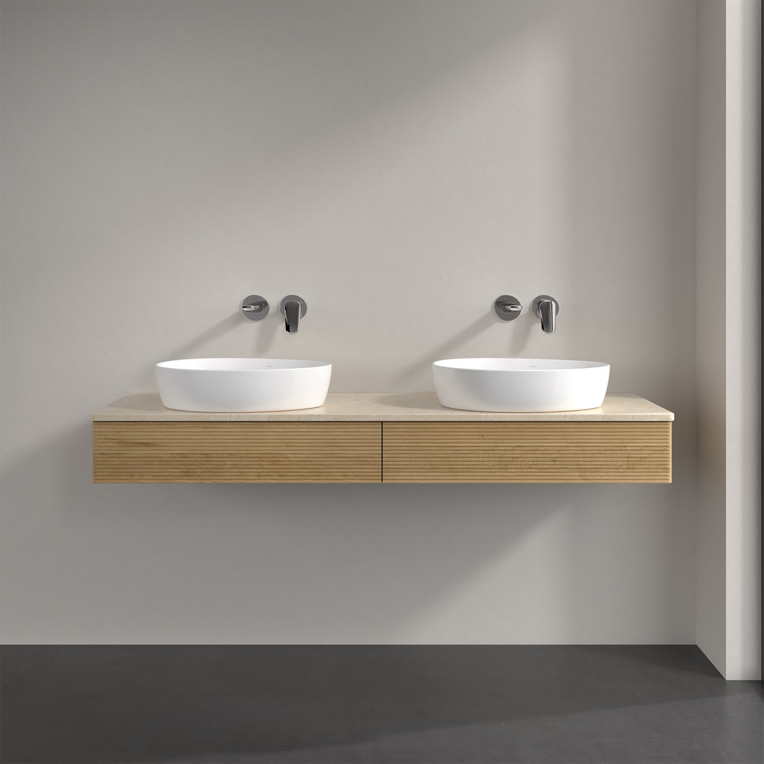 Villeroy & Boch Antao Waschbeckenunterschrank, 160 x 19 cm, 2 Auszüge mit LED-Licht, Front mit Struktur, ohne Hahnloch, für Waschtisch links und recht