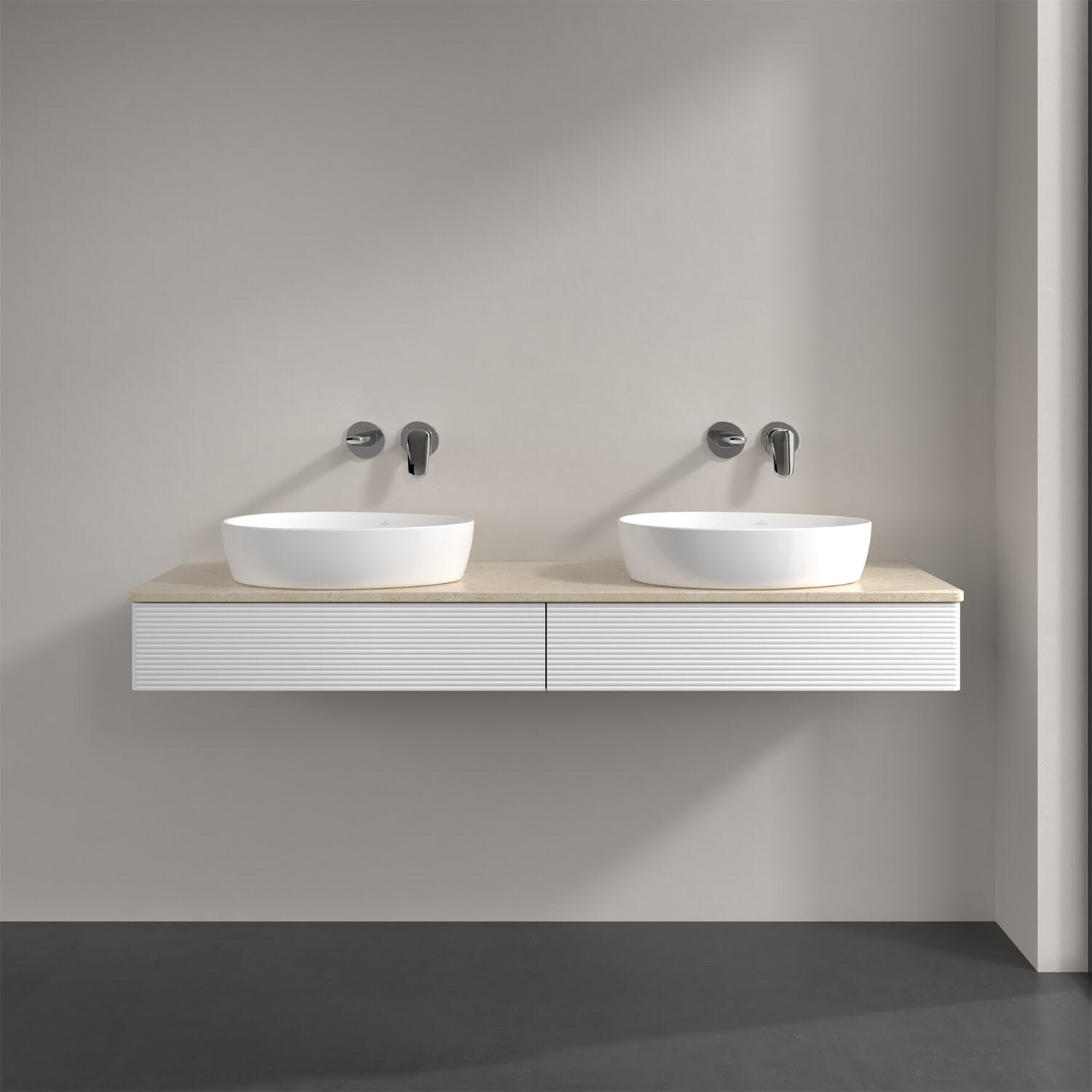 Villeroy & Boch Antao Waschbeckenunterschrank, 160 x 19 cm, 2 Auszüge mit LED-Licht, Front mit Struktur, ohne Hahnloch, für Waschtisch links und recht