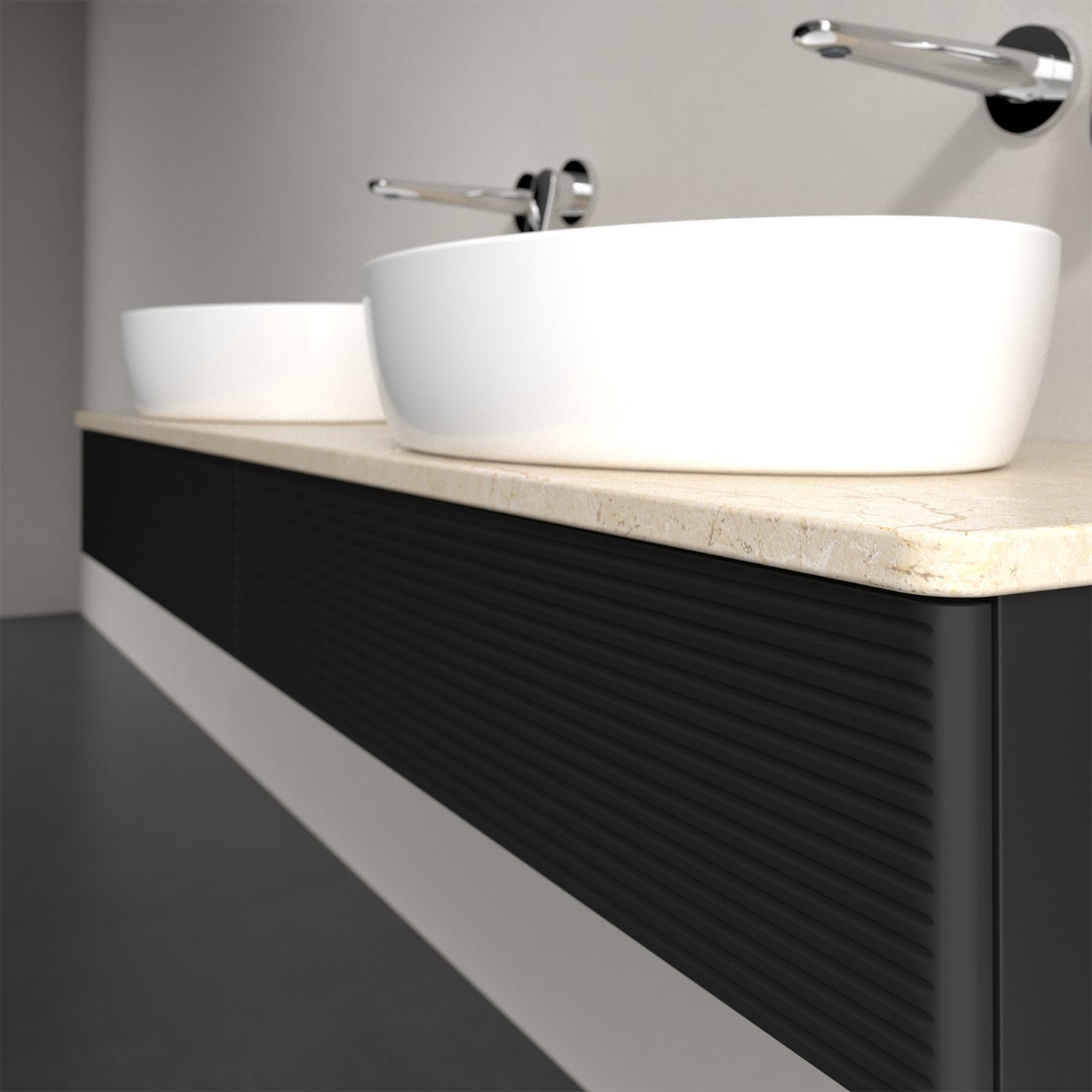 Villeroy & Boch Antao Waschbeckenunterschrank, 160 x 19 cm, 2 Auszüge mit LED-Licht, Front mit Struktur, ohne Hahnloch, für Waschtisch links und recht