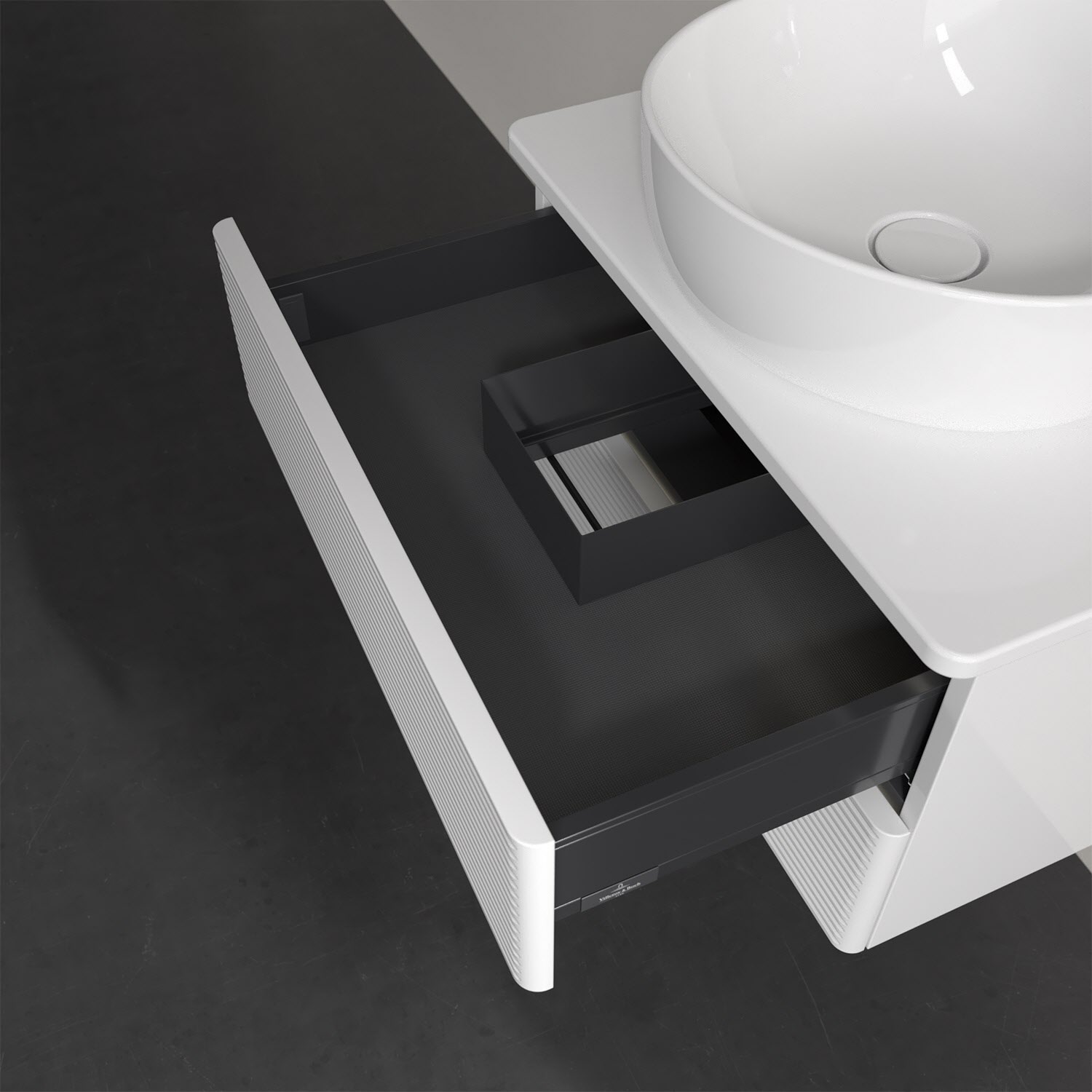 Villeroy & Boch Antao Waschbeckenunterschrank, 60 x 36 cm, 2 Auszüge mit LED-Licht, Front mit Struktur, ohne Hahnloch