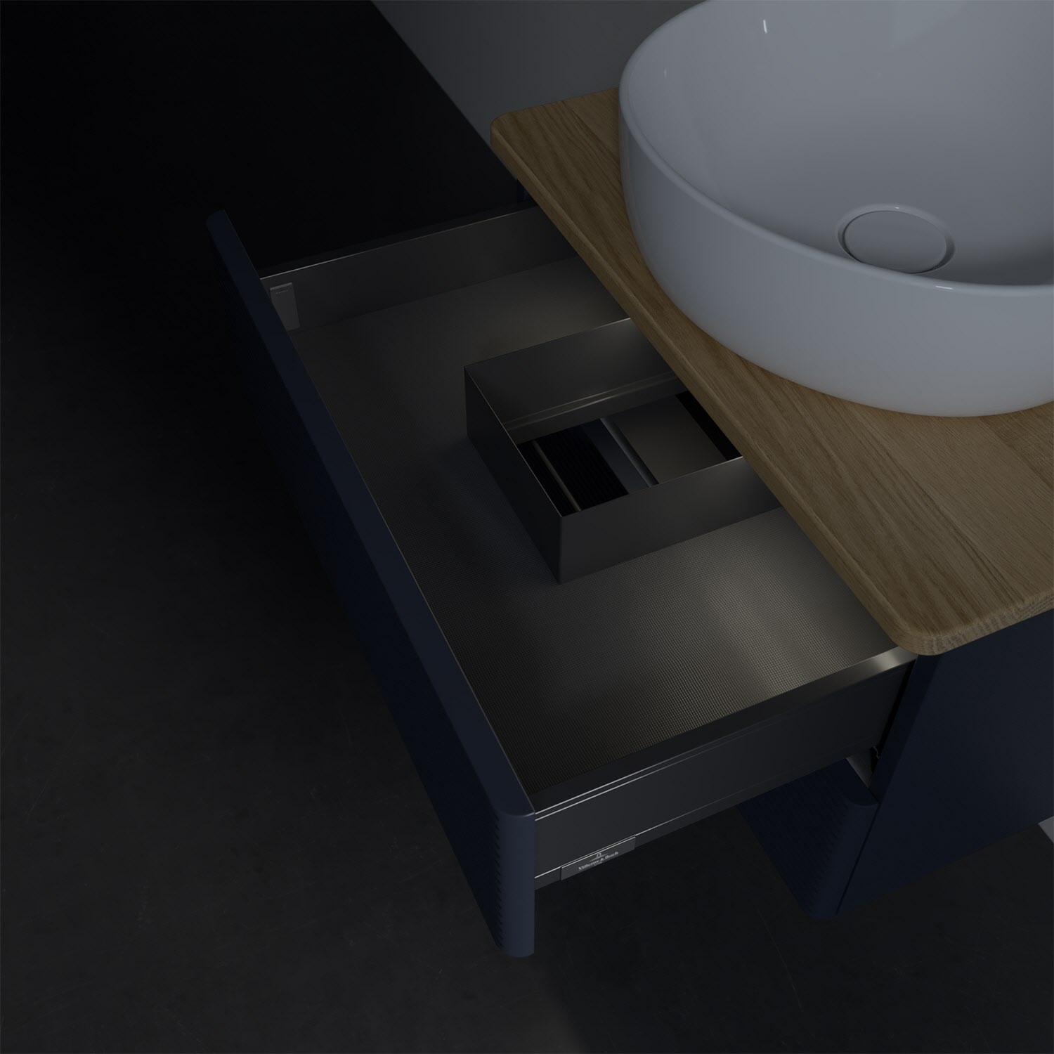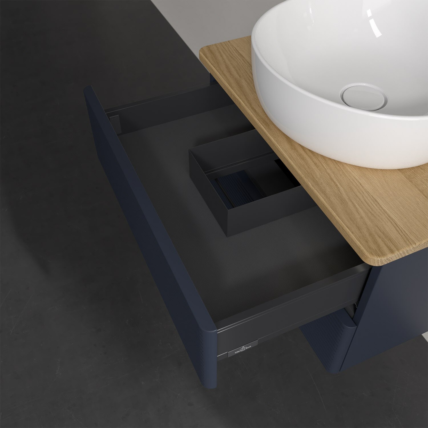 Villeroy & Boch Antao Waschbeckenunterschrank, 60 x 36 cm, 2 Auszüge mit LED-Licht, Front mit Struktur, ohne Hahnloch