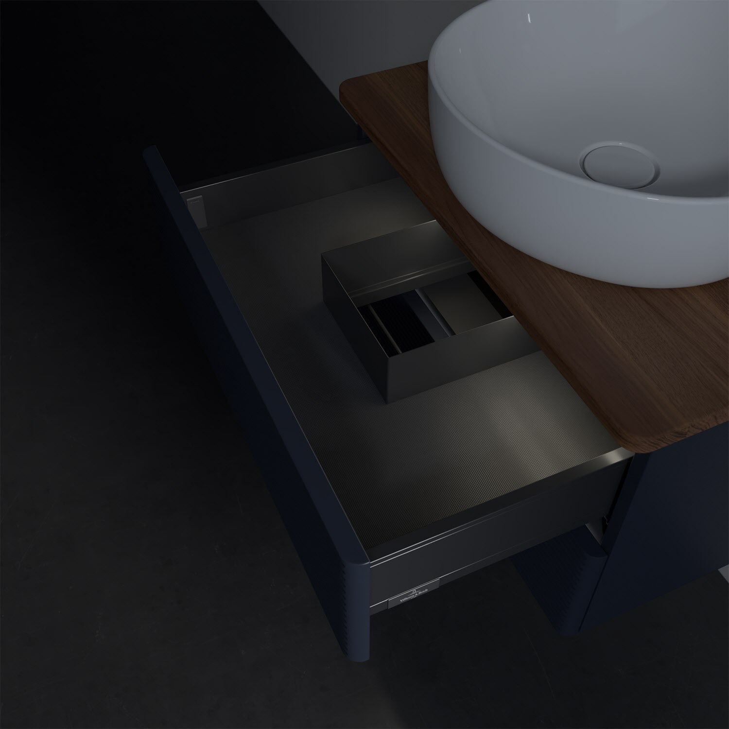 - in Schublade integrierte LED-Leiste mit warmweißem Licht zur Beleuchtung des Innenlebens