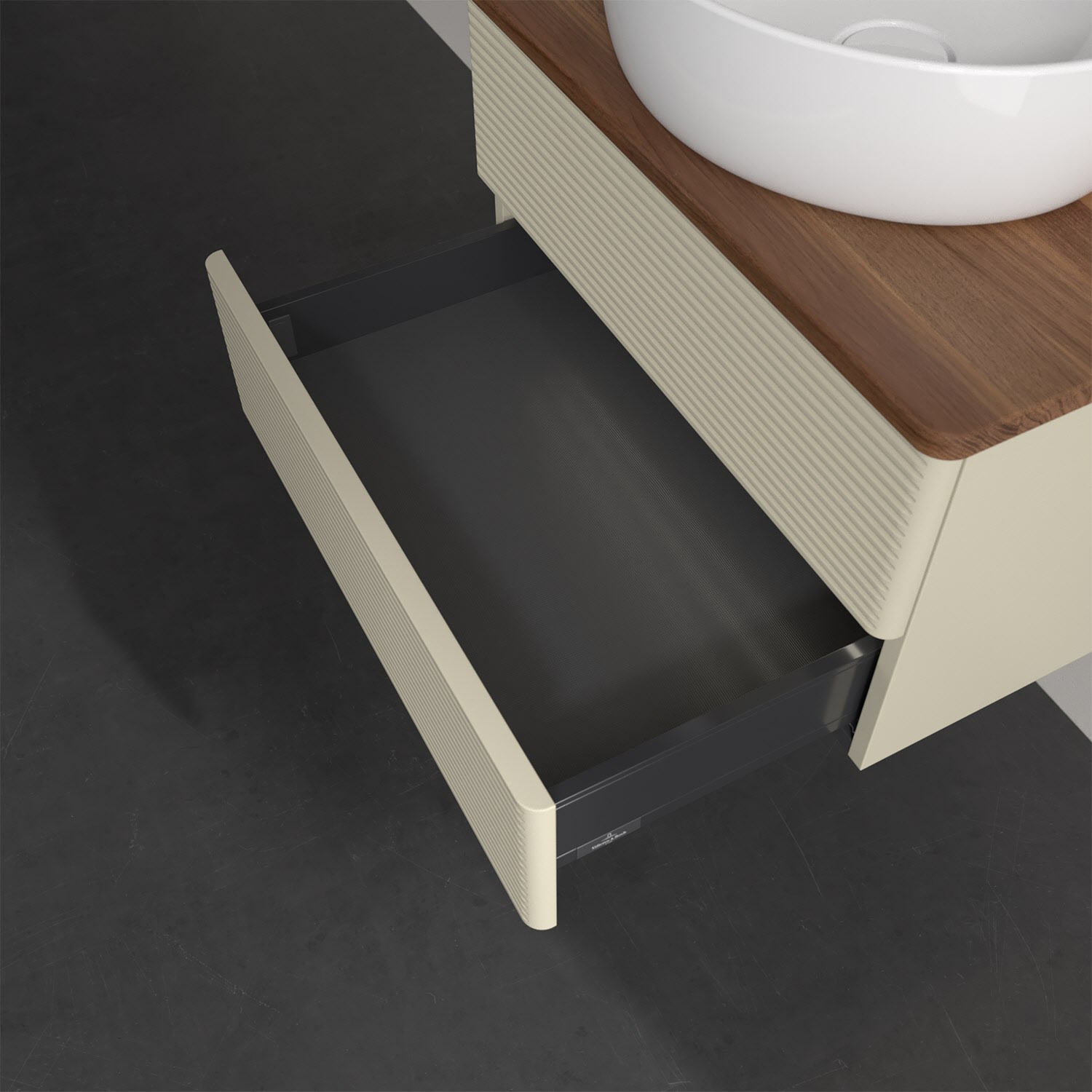 - kein Umfallen oder Verrutschen von Pflegeprodukten in den Schubladen dank rutschhemmendem Boden