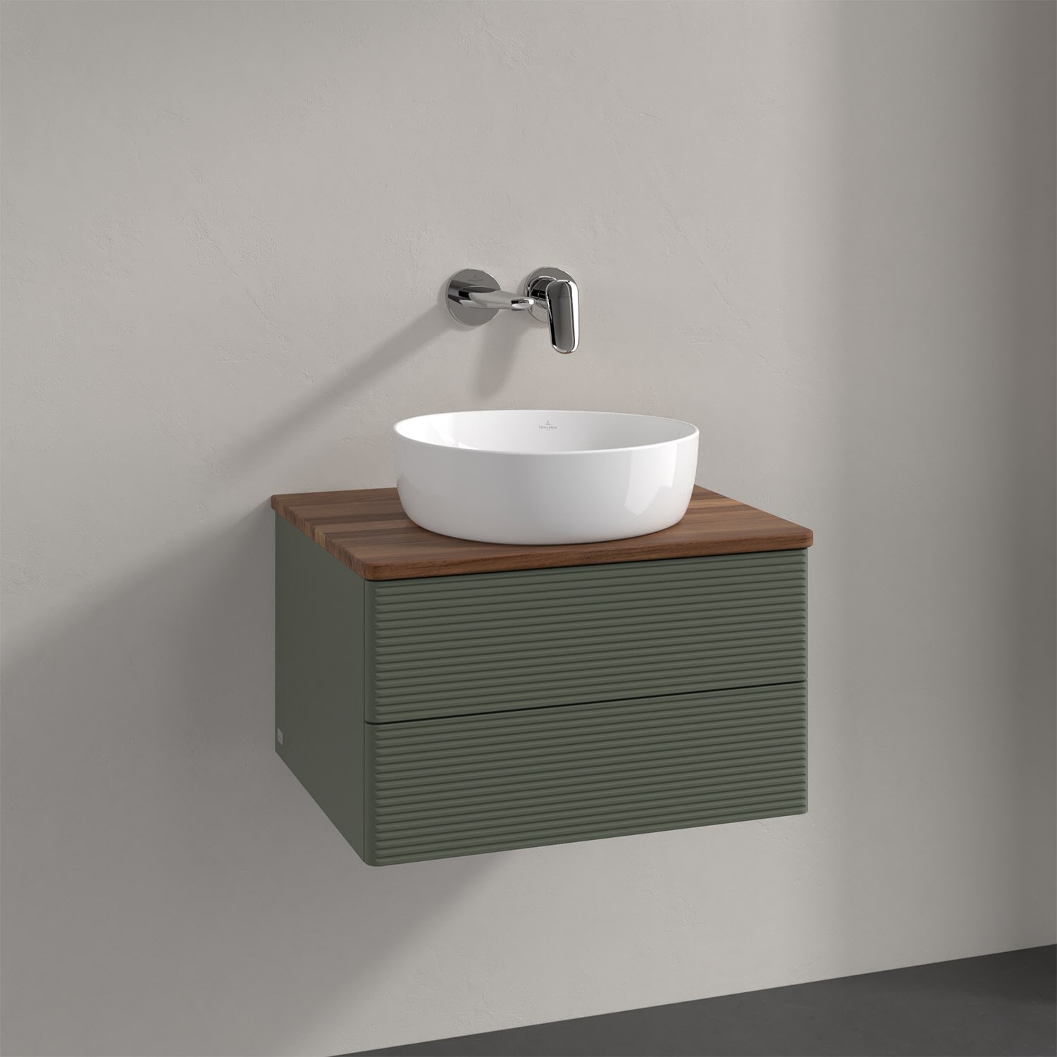 Villeroy & Boch Antao Waschbeckenunterschrank, 60 x 36 cm, 2 Auszüge mit LED-Licht, Front mit Struktur, ohne Hahnloch