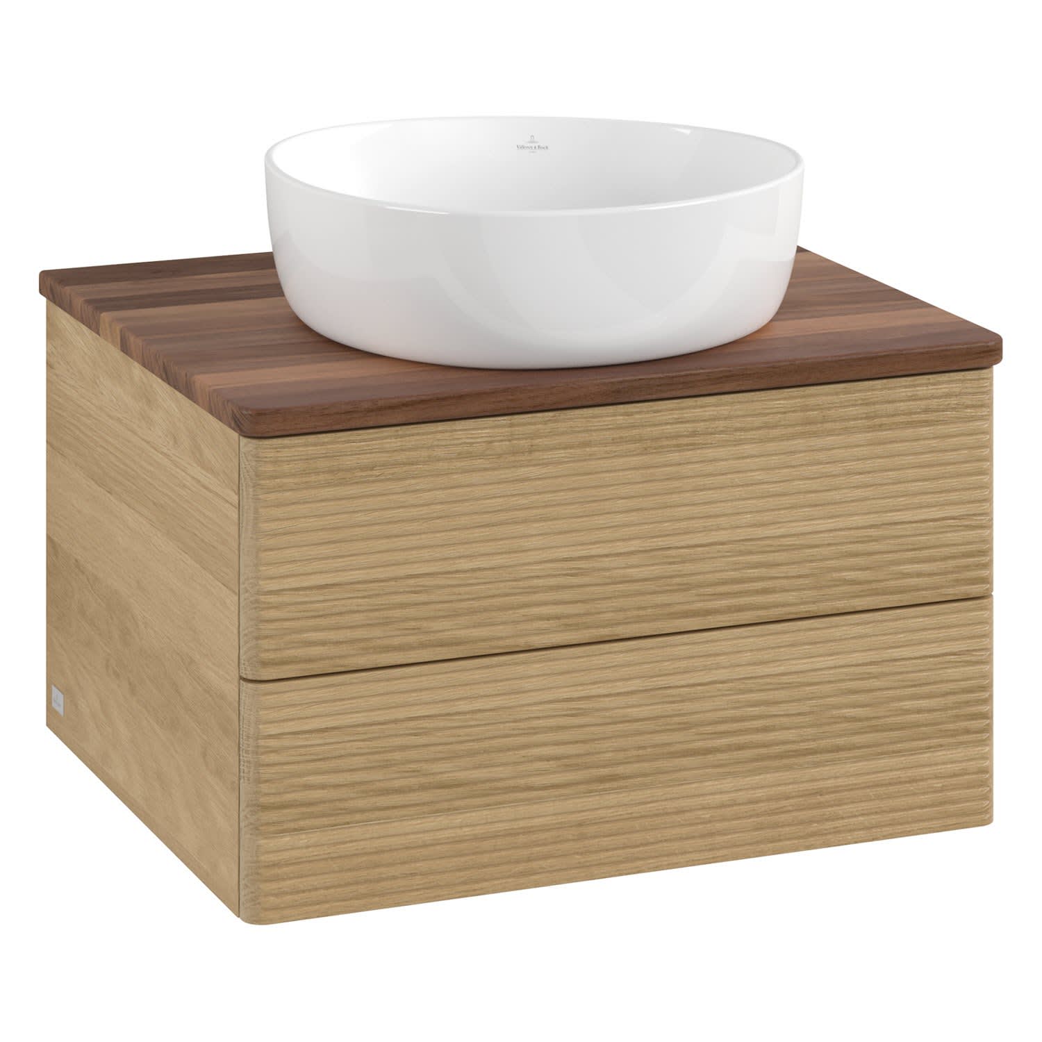 Villeroy & Boch Antao Waschbeckenunterschrank, 60 x 36 cm, 2 Auszüge mit LED-Licht, Front mit Struktur, ohne Hahnloch