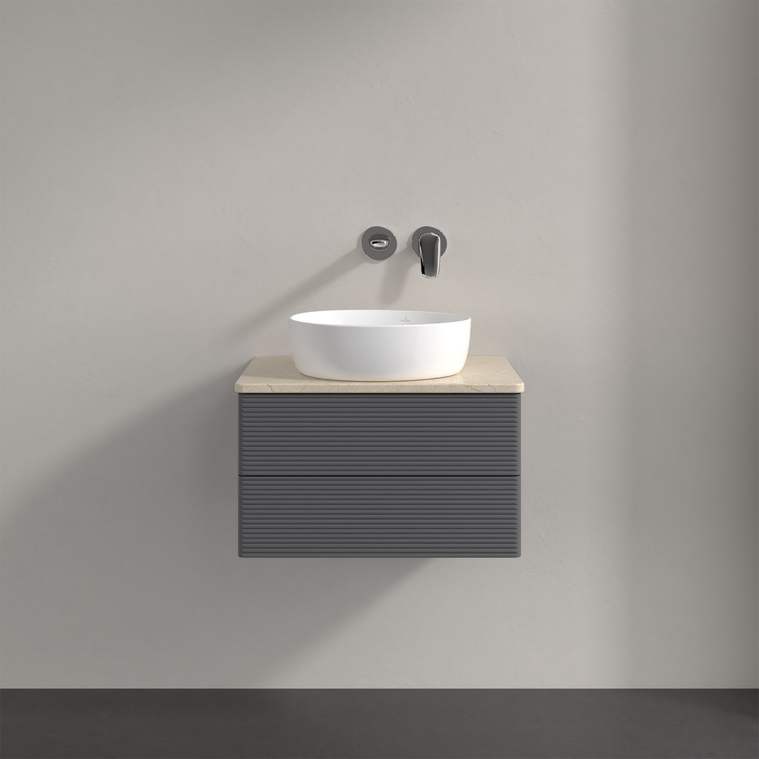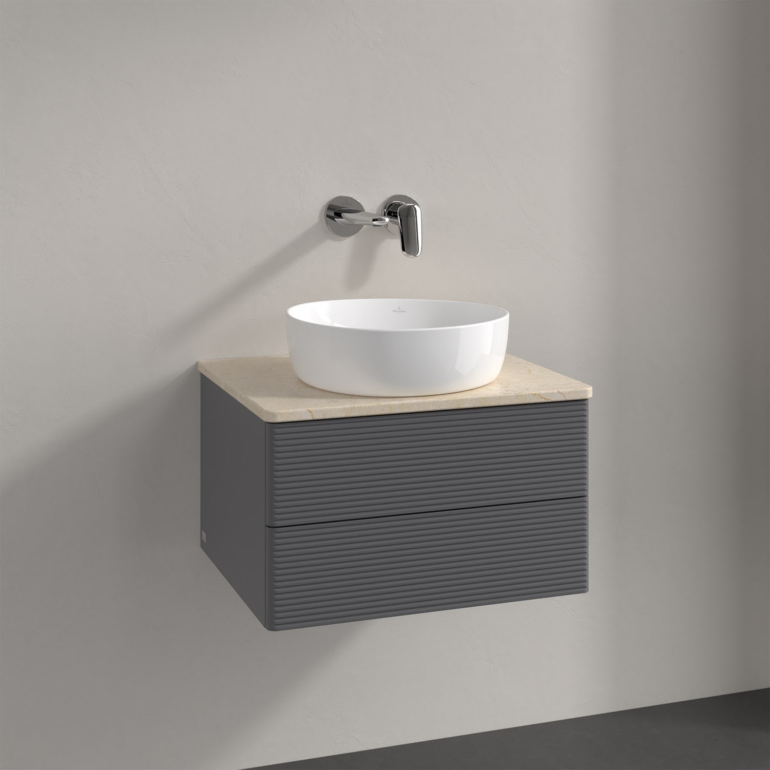 Villeroy & Boch Antao Waschbeckenunterschrank, 60 x 36 cm, 2 Auszüge mit LED-Licht, Front mit Struktur, ohne Hahnloch