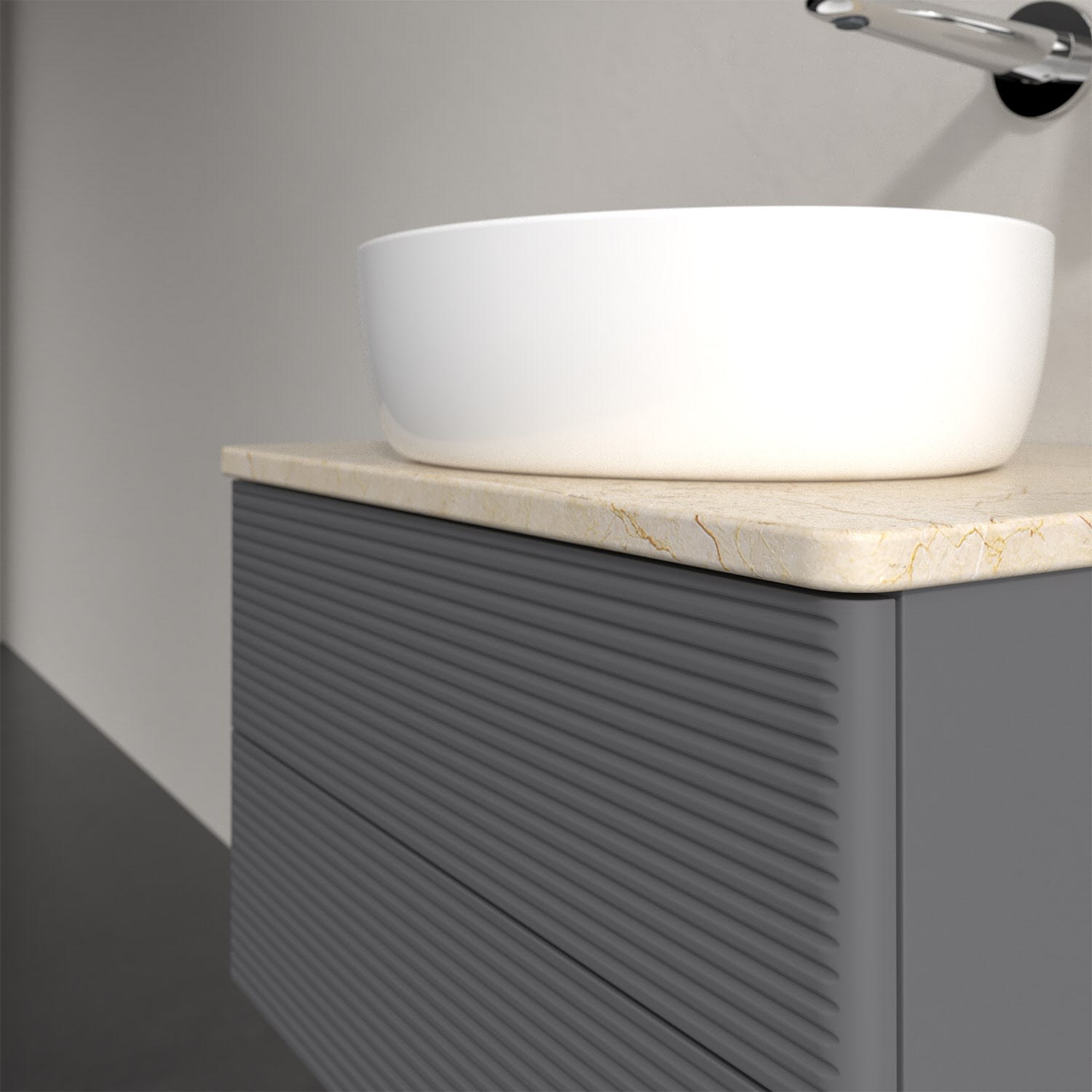 Für diesen Waschbeckenunterschrank stehen Ihnen Aufsatzwaschtische aus verschiedenen Serien zur Verfügung (siehe "Passliste" unter Downloads). Ein ausgewähltes Beispiel finden Sie im Zubehör. Den Waschtisch bitte separat mitbestellen.
