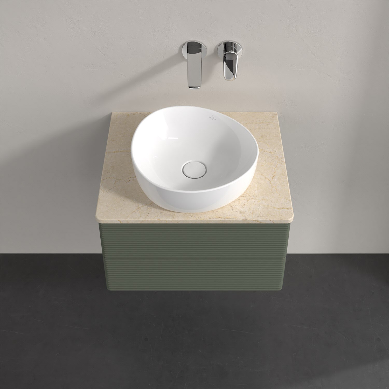 Für diesen Waschbeckenunterschrank stehen Ihnen Aufsatzwaschtische aus verschiedenen Serien zur Verfügung (siehe "Passliste" unter Downloads). Ein ausgewähltes Beispiel finden Sie im Zubehör. Den Waschtisch bitte separat mitbestellen.