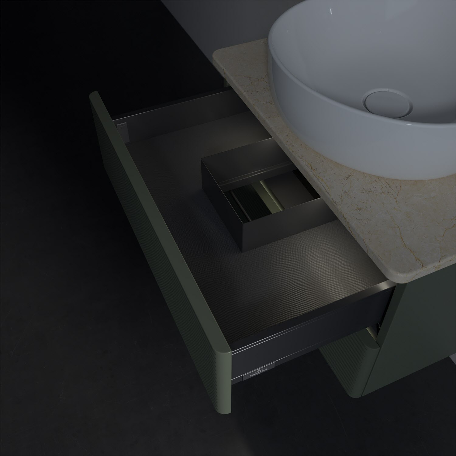 - kein Umfallen oder Verrutschen von Pflegeprodukten in den Schubladen dank rutschhemmendem Boden