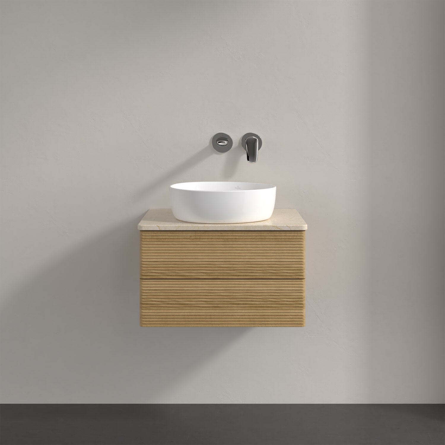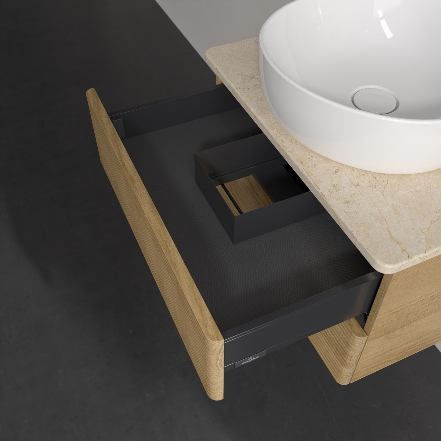 Villeroy & Boch Antao Waschbeckenunterschrank, 60 x 36 cm, 2 Auszüge mit LED-Licht, Front mit Struktur, ohne Hahnloch
