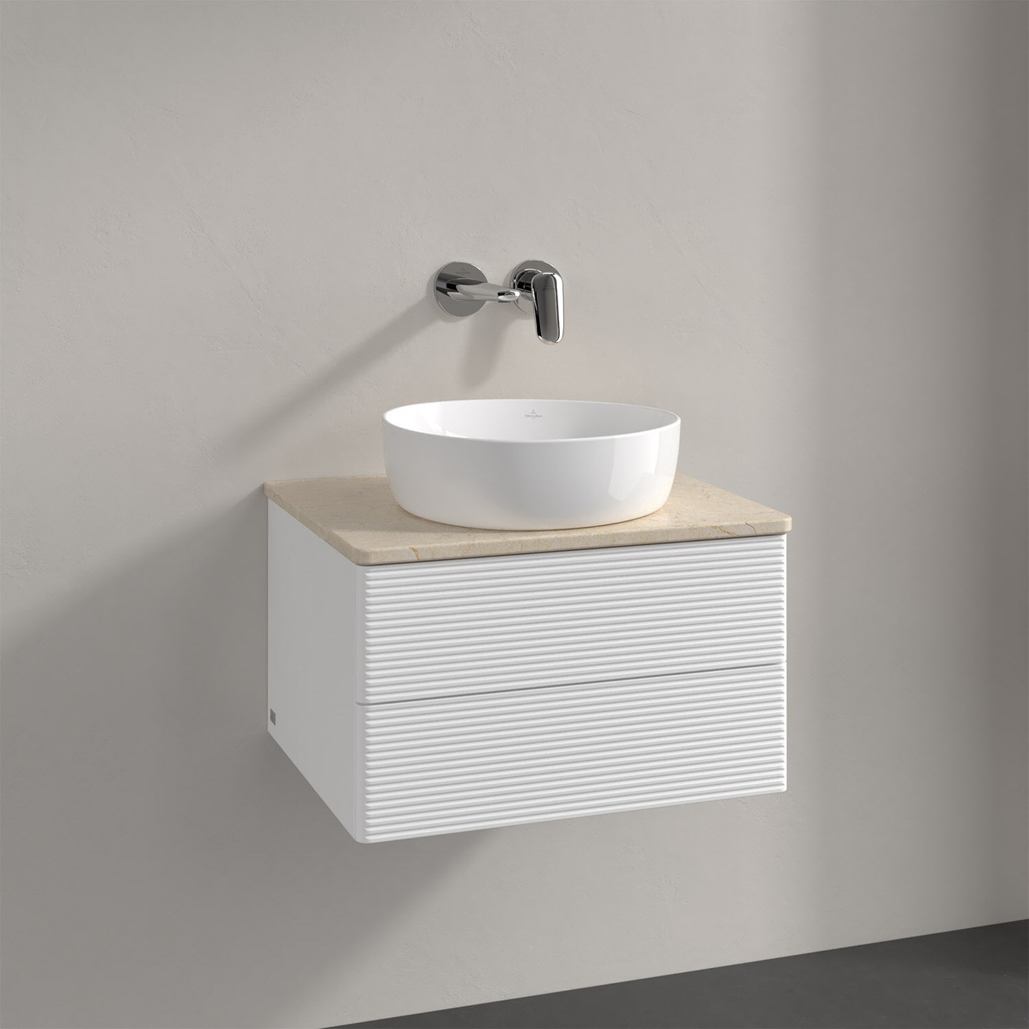 Villeroy & Boch Antao Waschbeckenunterschrank, 60 x 36 cm, 2 Auszüge mit LED-Licht, Front mit Struktur, ohne Hahnloch