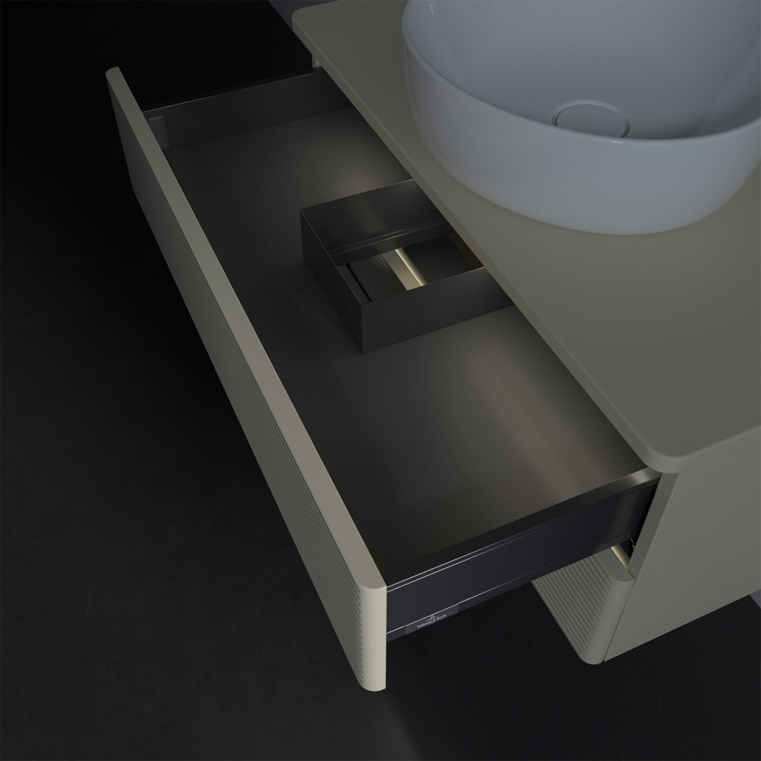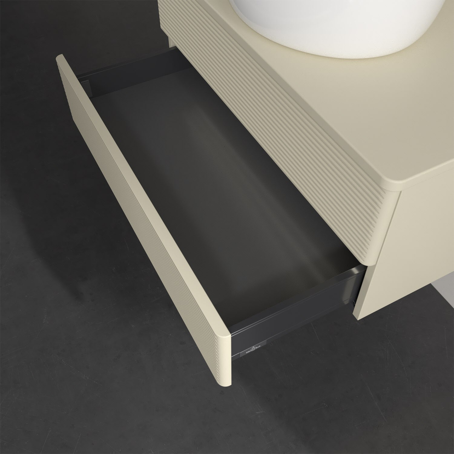 - kein Umfallen oder Verrutschen von Pflegeprodukten in den Schubladen dank rutschhemmendem Boden