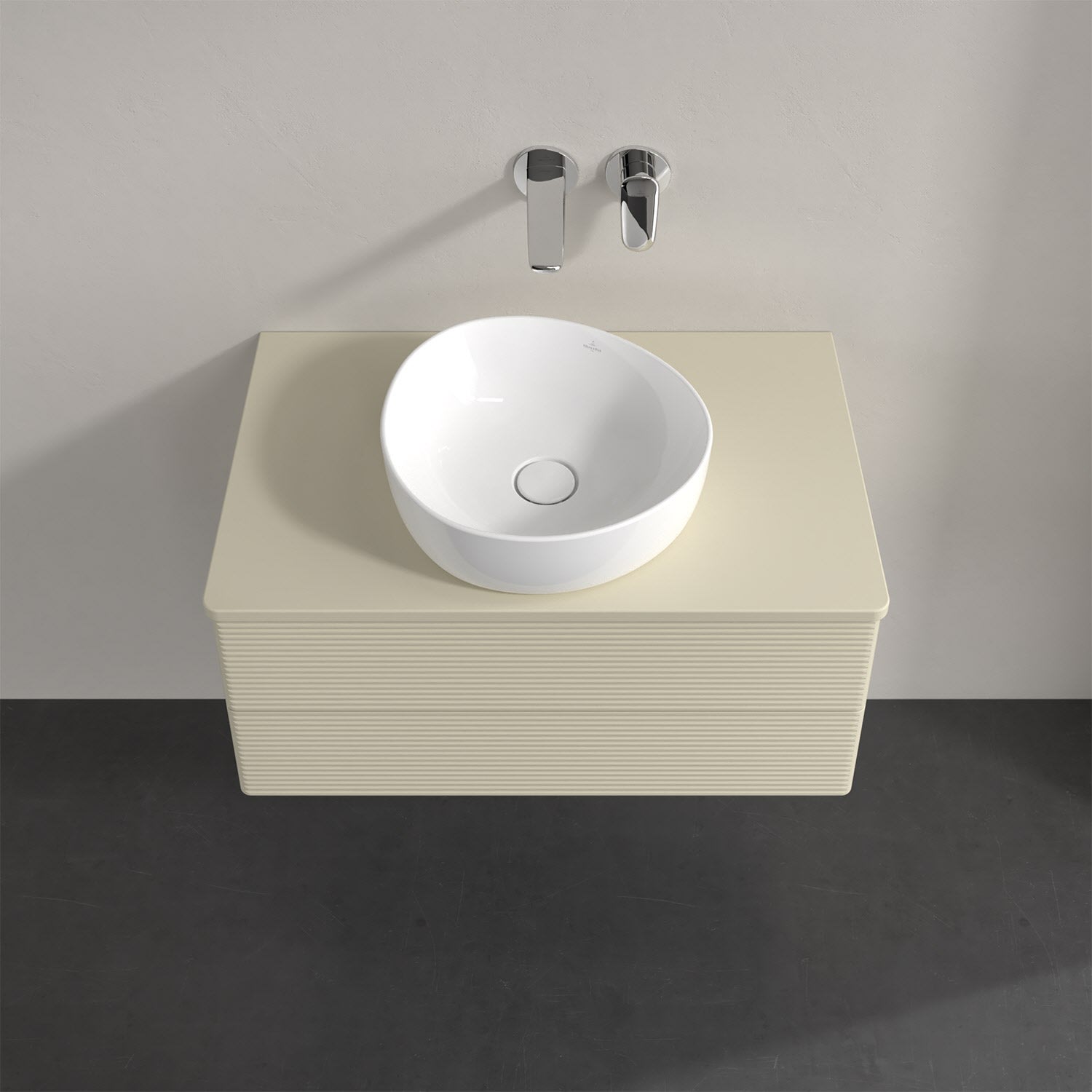 Für diesen Waschbeckenunterschrank stehen Ihnen Aufsatzwaschtische aus verschiedenen Serien zur Verfügung (siehe "Passliste" unter Downloads). Ein ausgewähltes Beispiel finden Sie im Zubehör. Den Waschtisch bitte separat mitbestellen.