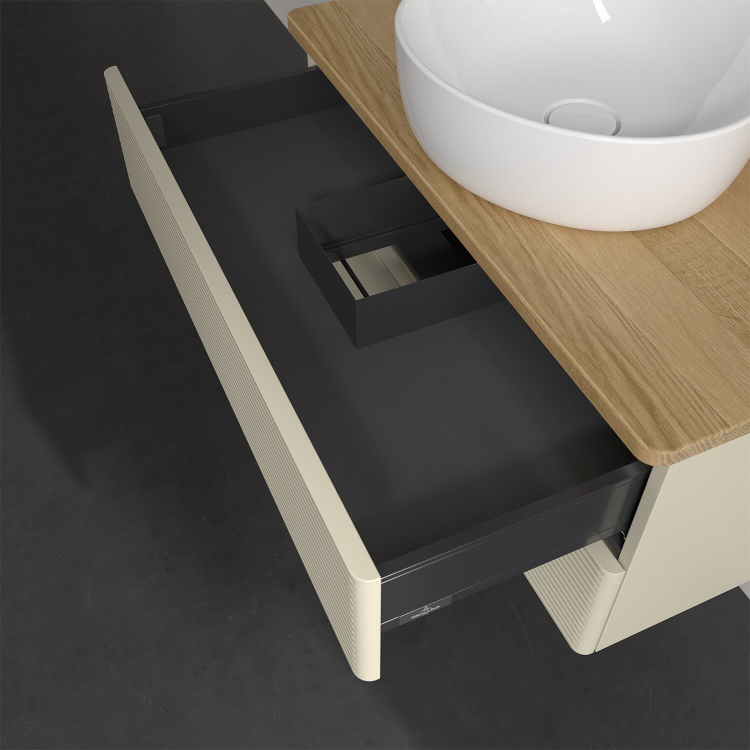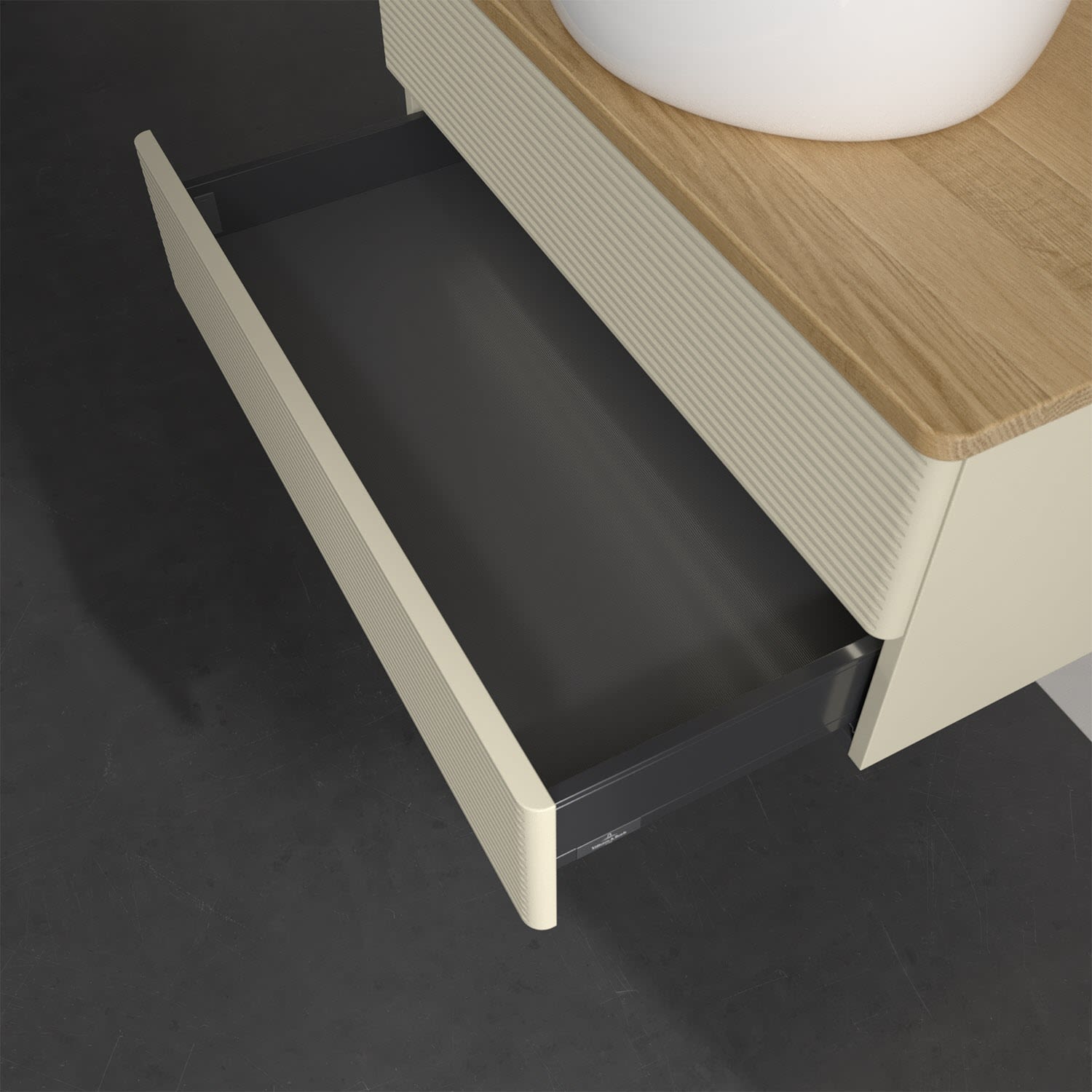 - kein Umfallen oder Verrutschen von Pflegeprodukten in den Schubladen dank rutschhemmendem Boden