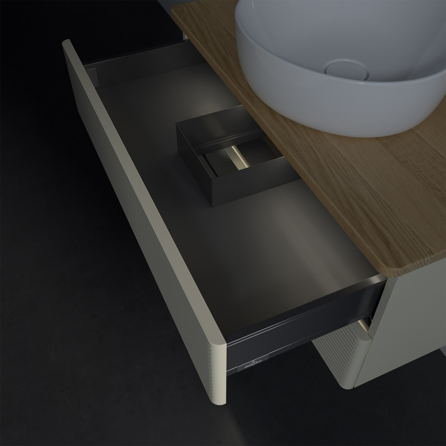 Villeroy & Boch Antao Waschbeckenunterschrank, 80 x 36 cm, 2 Auszüge mit LED-Licht, Front mit Struktur, ohne Hahnloch