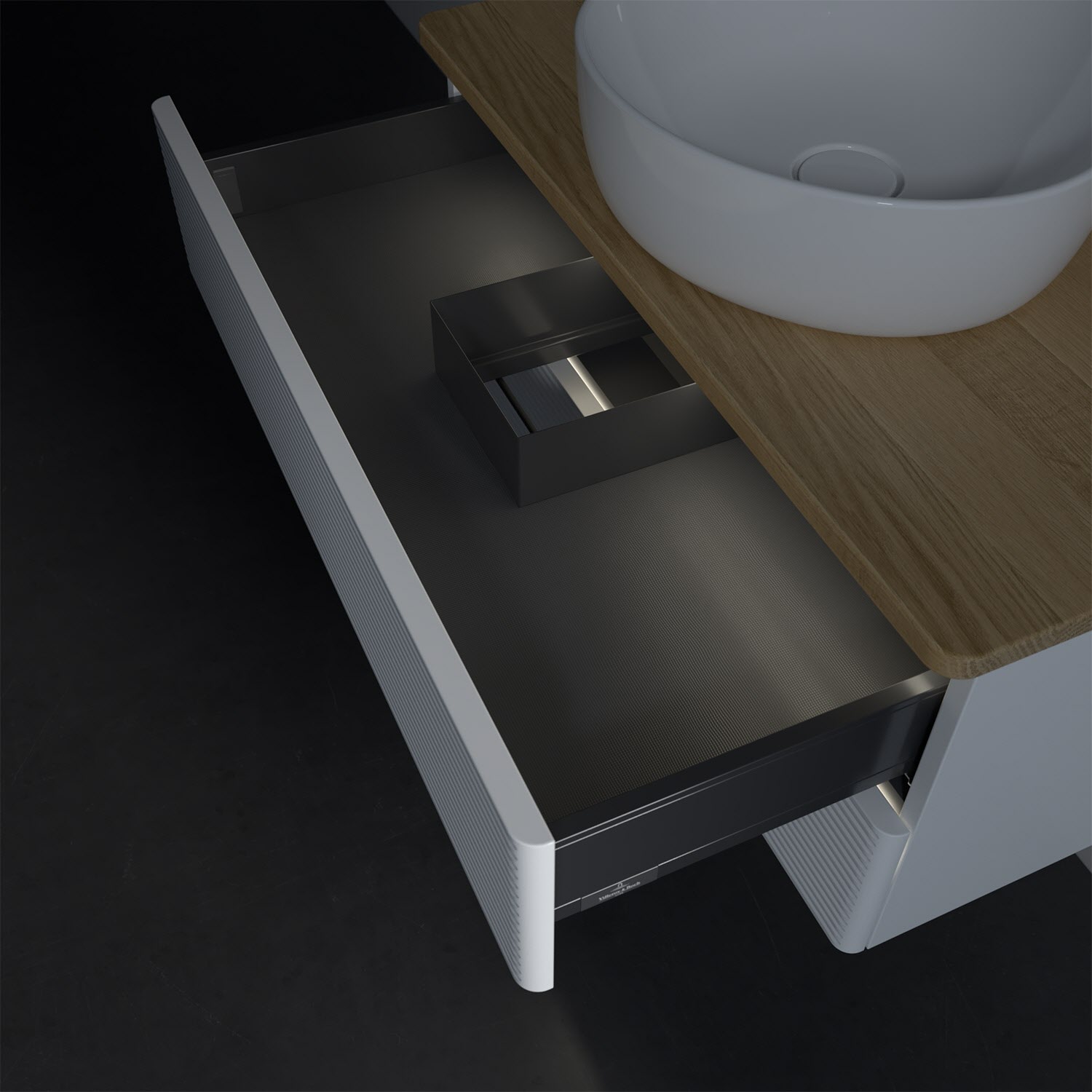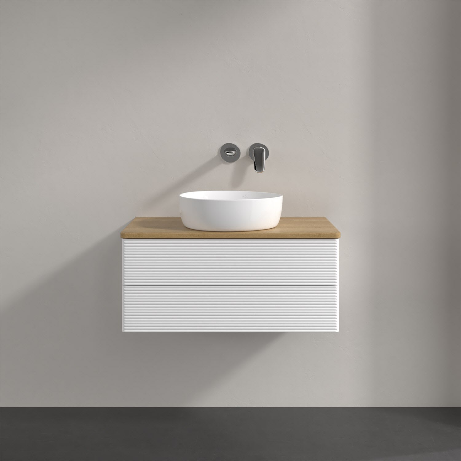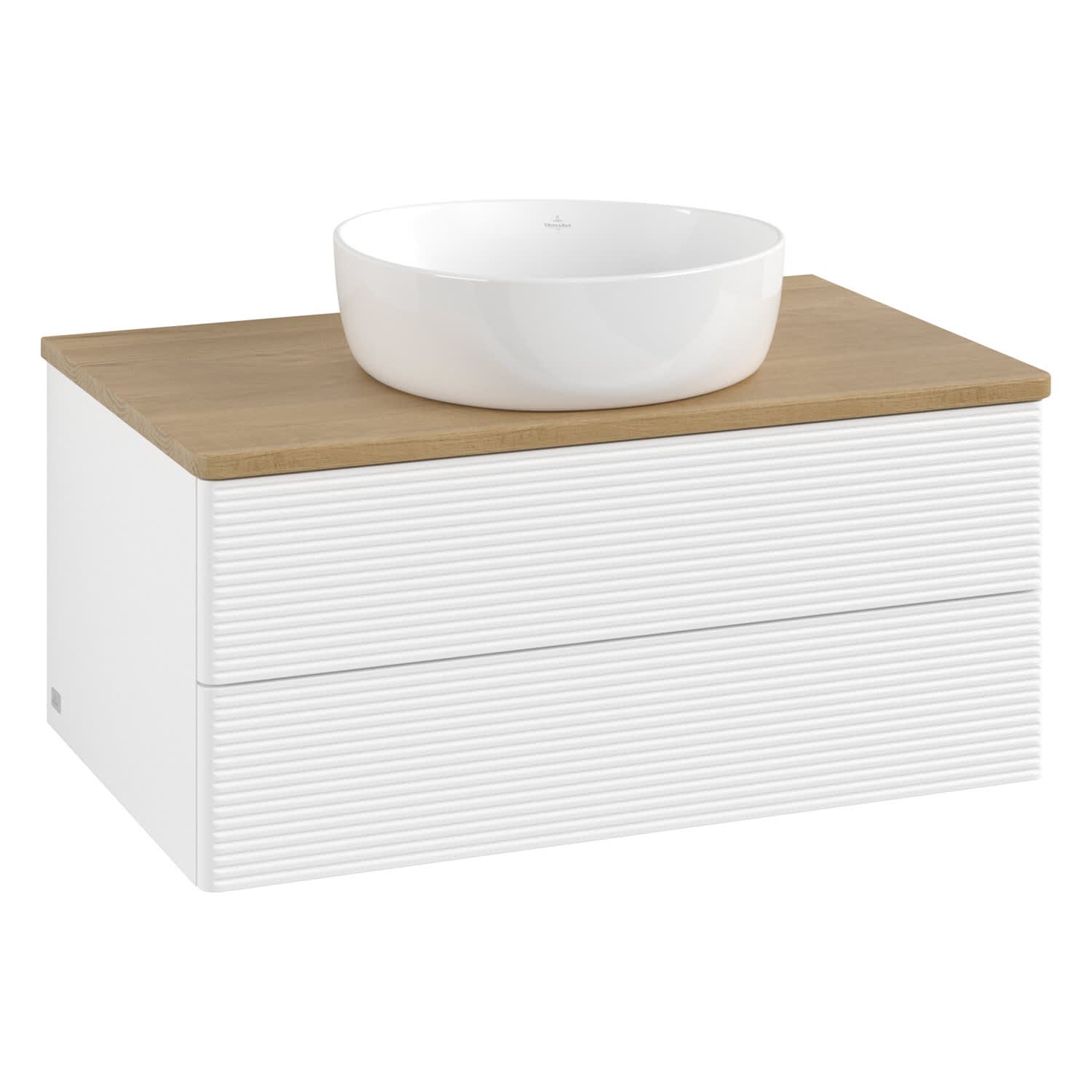 Villeroy & Boch Antao Waschbeckenunterschrank, 80 x 36 cm, 2 Auszüge mit LED-Licht, Front mit Struktur, ohne Hahnloch