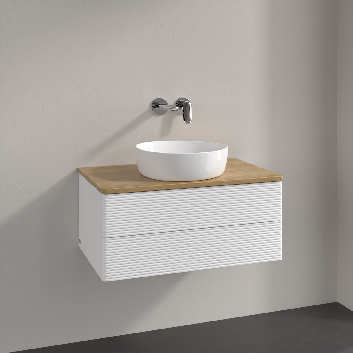 Mit dem wandhängenden Waschtischunterschrank der Kollektion Antao wird ein natürliches und gemütliches Flair am Waschplatz geschaffen. Dafür sorgen die sanfte Formsprache mit abgerundeten Kanten und die strukturierte Front des hochwertigen Badmöbels. Die wichtigsten Badutensilien für die tägliche Routine können seitlich des Waschtischs auf die Waschtischplatte gestellt werden. Ansonsten bieten zwei Auszüge inklusive warmweißer Beleuchtung und Antirutschboden ausreichend Platz für weitere Produkte, die garantiert bleiben, wo sie hingehören. Der Unterschrank verfügt zudem über einen Vollauszug und Selbsteinzug mit SoftClosing Funktion, damit er bequem und mühelos geöffnet und geschlossen werden kann. Gewohnte Qualität von Villeroy & Boch! Für eine besonders leichte Pflege sorgt die mehrschichtig deckend lackierte Oberfläche. Bei der Ausführung in Massivholz wird dank des verarbeiteten Massivholzes jedes Möbel zu einem Unikat, das sich durch das lebendige Naturmaterial durch seine einzigartige Struktur und Maserung auszeichnet.