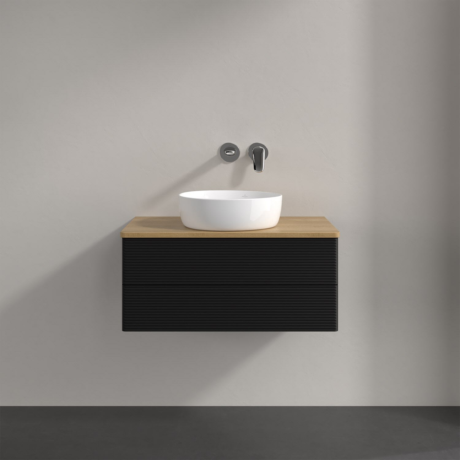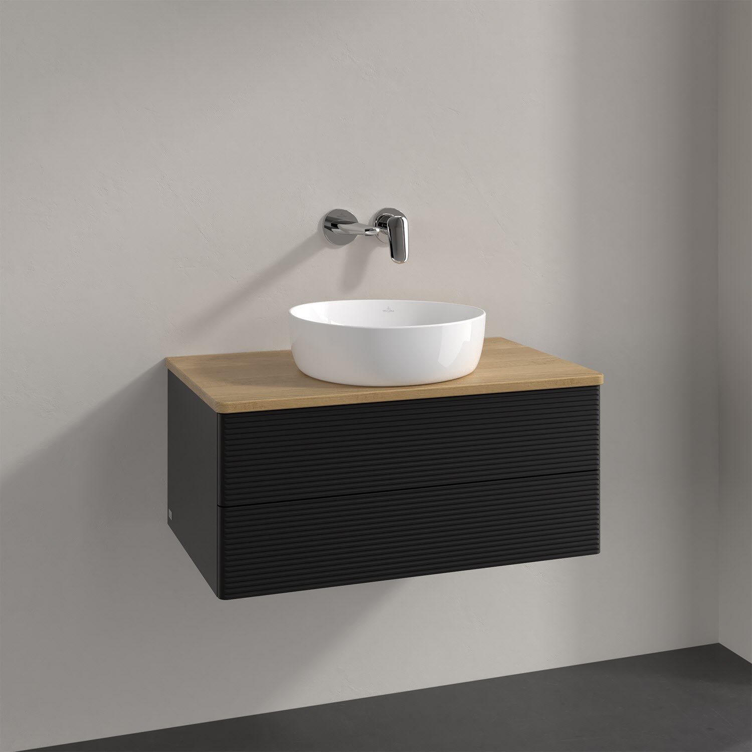 Villeroy & Boch Antao Waschbeckenunterschrank, 80 x 36 cm, 2 Auszüge mit LED-Licht, Front mit Struktur, ohne Hahnloch