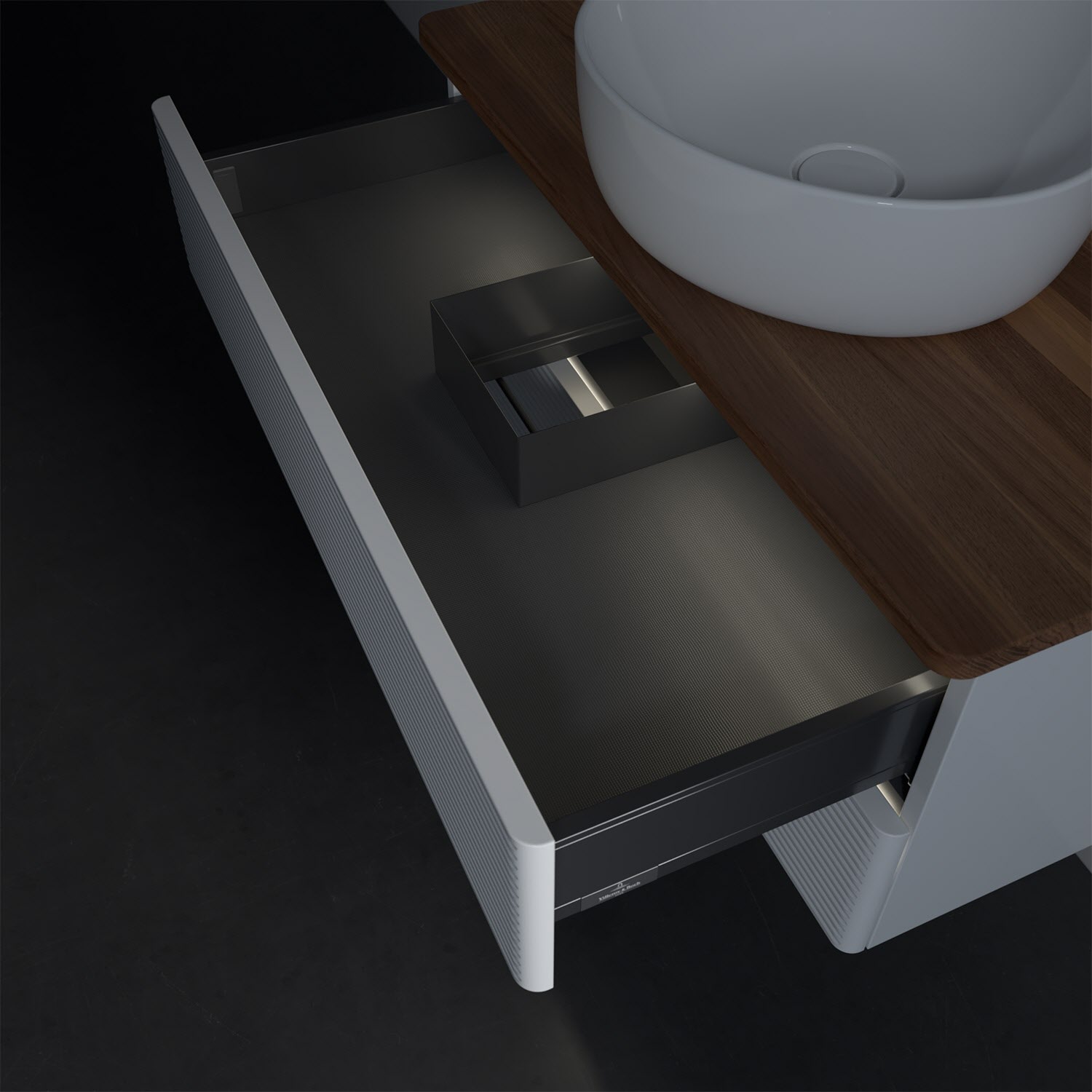 - kein Umfallen oder Verrutschen von Pflegeprodukten in den Schubladen dank rutschhemmendem Boden