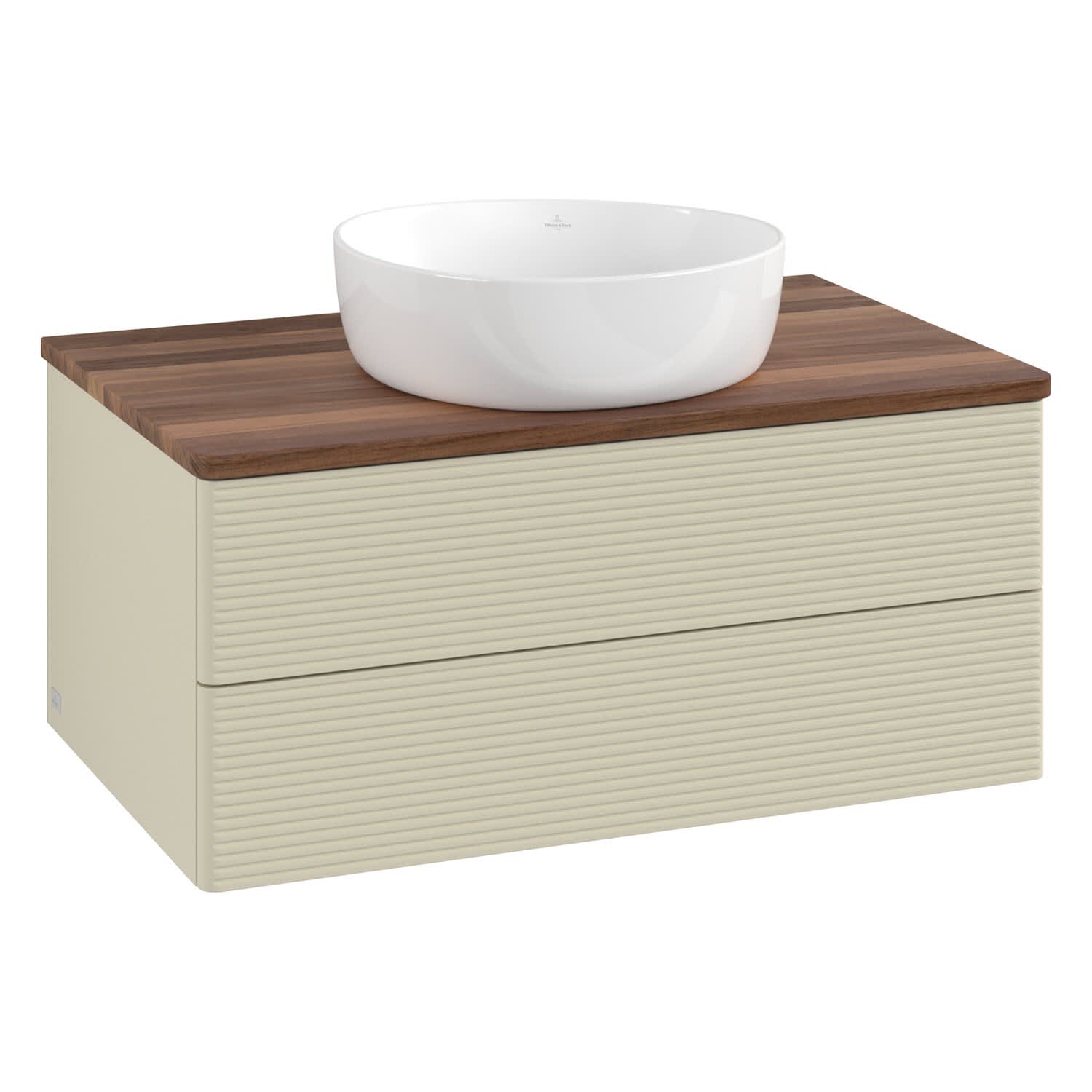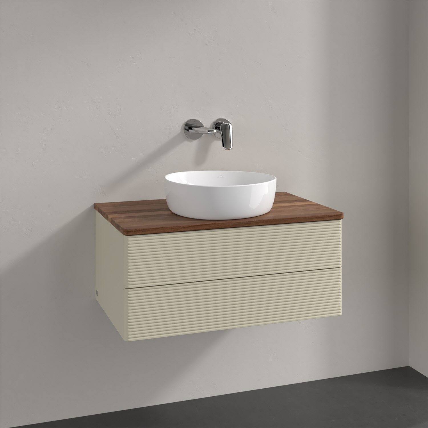 Villeroy & Boch Antao Waschbeckenunterschrank, 80 x 36 cm, 2 Auszüge mit LED-Licht, Front mit Struktur, ohne Hahnloch