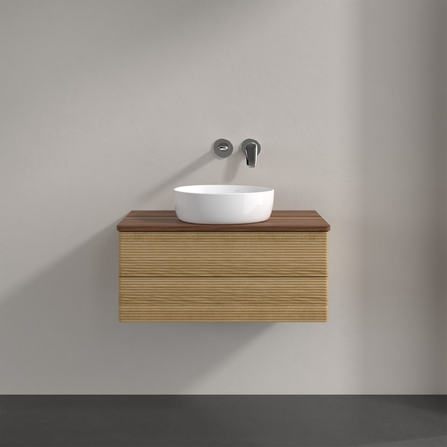 Villeroy & Boch Antao Waschbeckenunterschrank, 80 x 36 cm, 2 Auszüge mit LED-Licht, Front mit Struktur, ohne Hahnloch