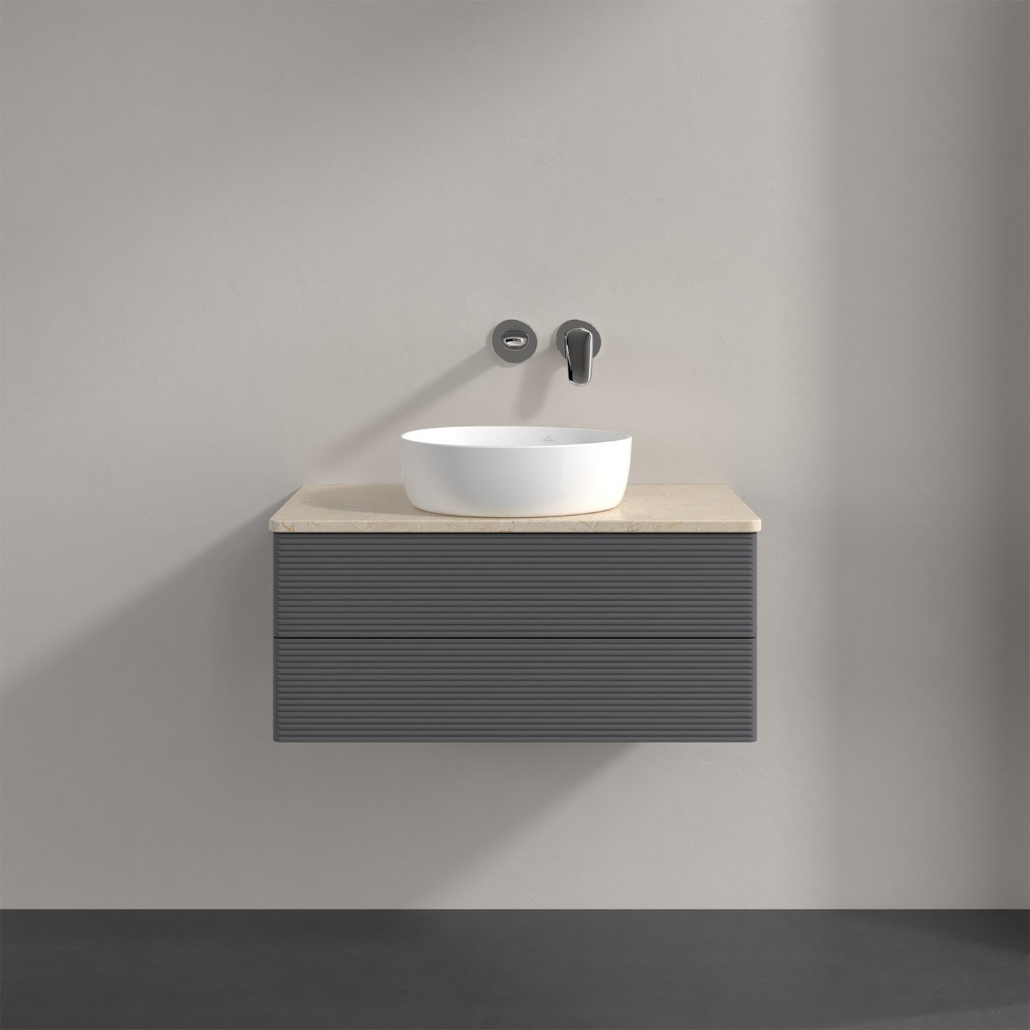 Villeroy & Boch Antao Waschbeckenunterschrank, 80 x 36 cm, 2 Auszüge mit LED-Licht, Front mit Struktur, ohne Hahnloch