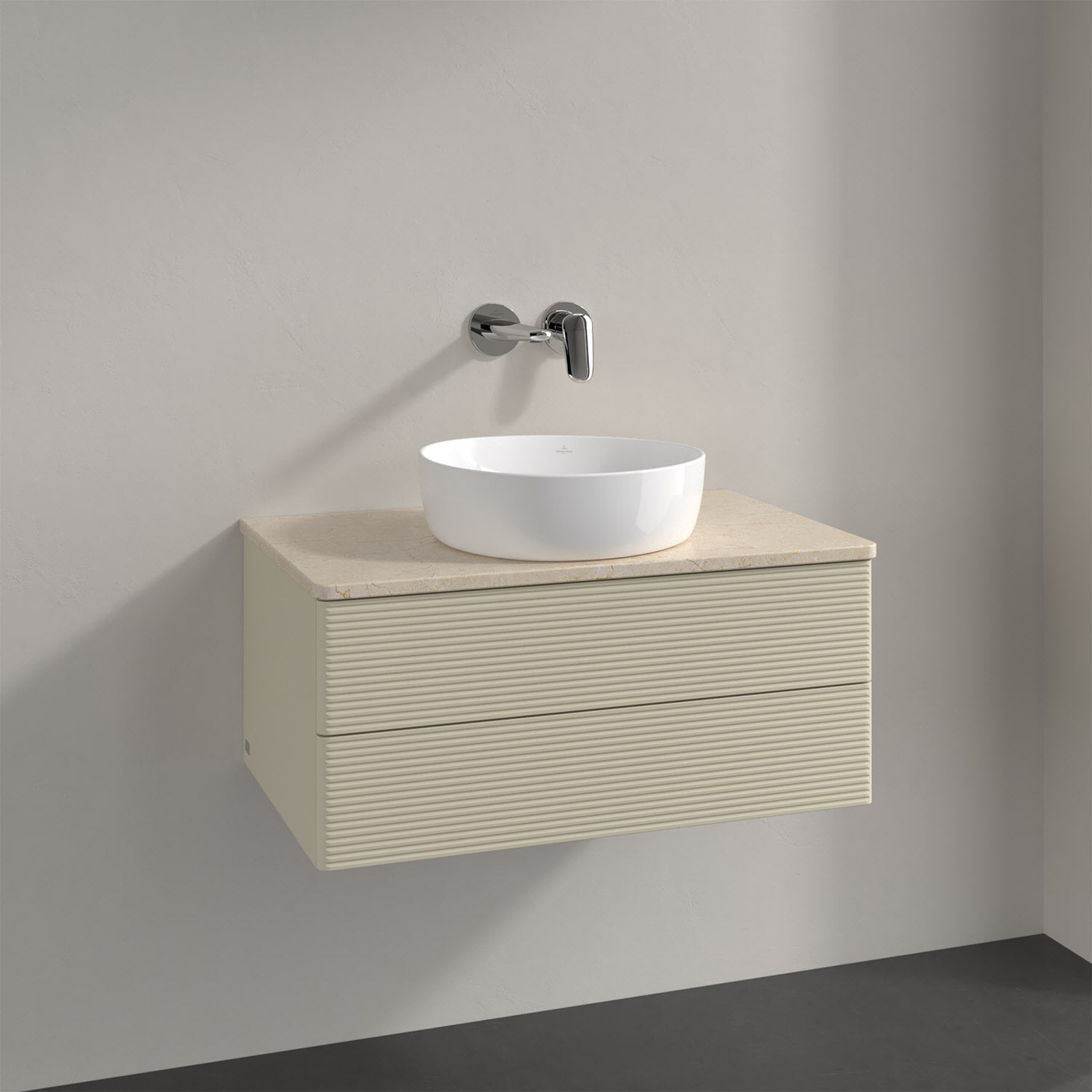 Villeroy & Boch Antao Waschbeckenunterschrank, 80 x 36 cm, 2 Auszüge mit LED-Licht, Front mit Struktur, ohne Hahnloch