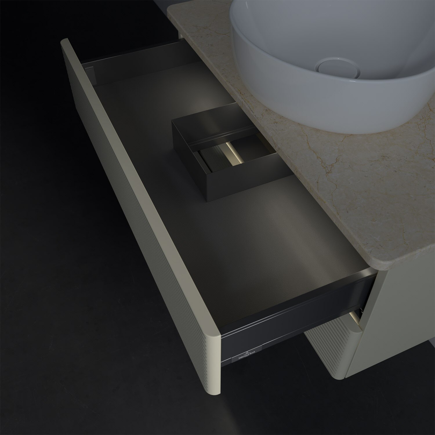 - kein Umfallen oder Verrutschen von Pflegeprodukten in den Schubladen dank rutschhemmendem Boden