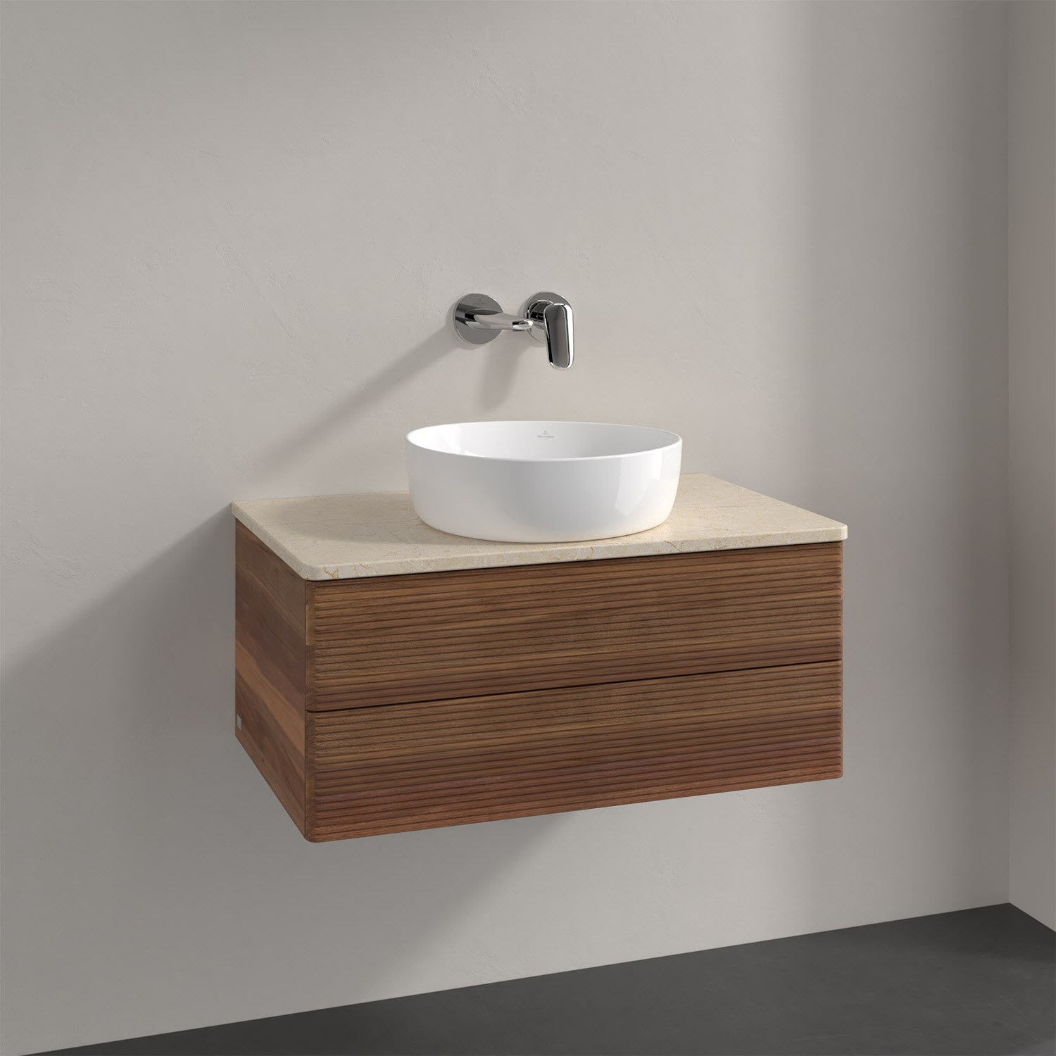 Villeroy & Boch Antao Waschbeckenunterschrank, 80 x 36 cm, 2 Auszüge mit LED-Licht, Front mit Struktur, ohne Hahnloch