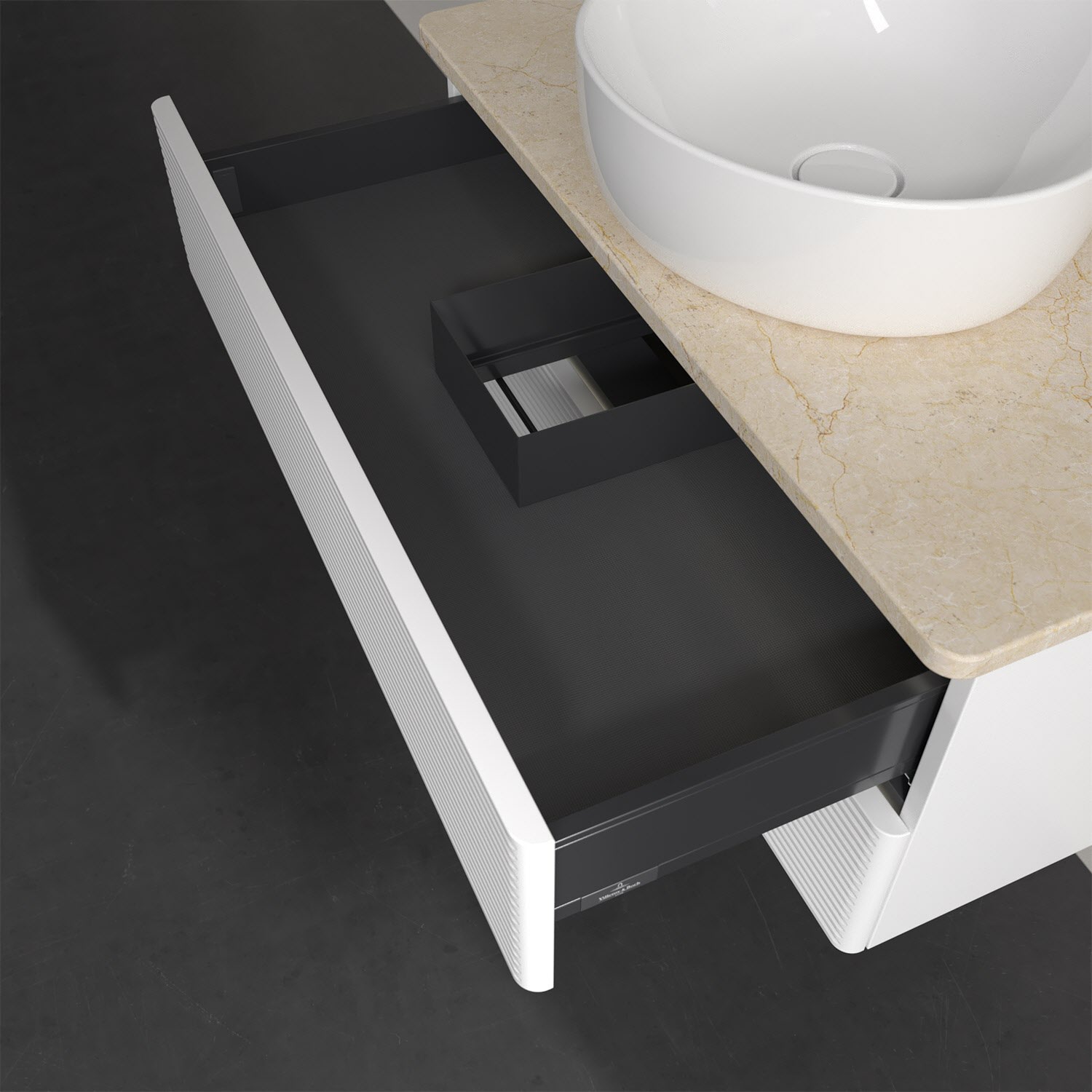 - kein Umfallen oder Verrutschen von Pflegeprodukten in den Schubladen dank rutschhemmendem Boden