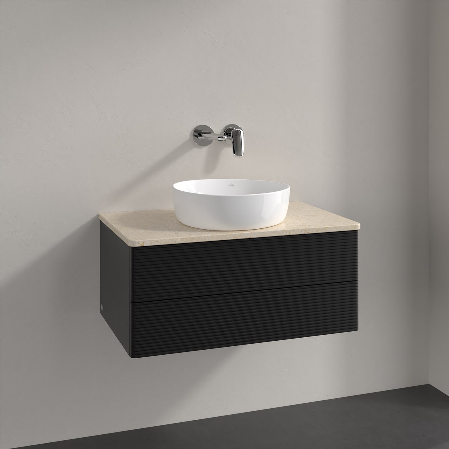 Villeroy & Boch Antao Waschbeckenunterschrank, 80 x 36 cm, 2 Auszüge mit LED-Licht, Front mit Struktur, ohne Hahnloch