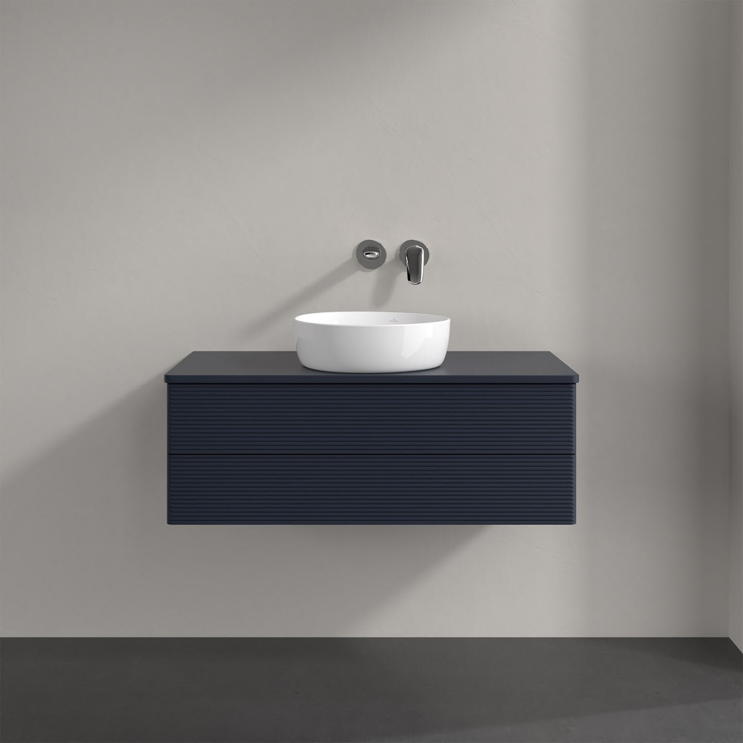 Villeroy & Boch Antao Waschbeckenunterschrank, 100 x 36 cm, 2 Auszüge mit LED-Licht, Front mit Struktur, ohne Hahnloch