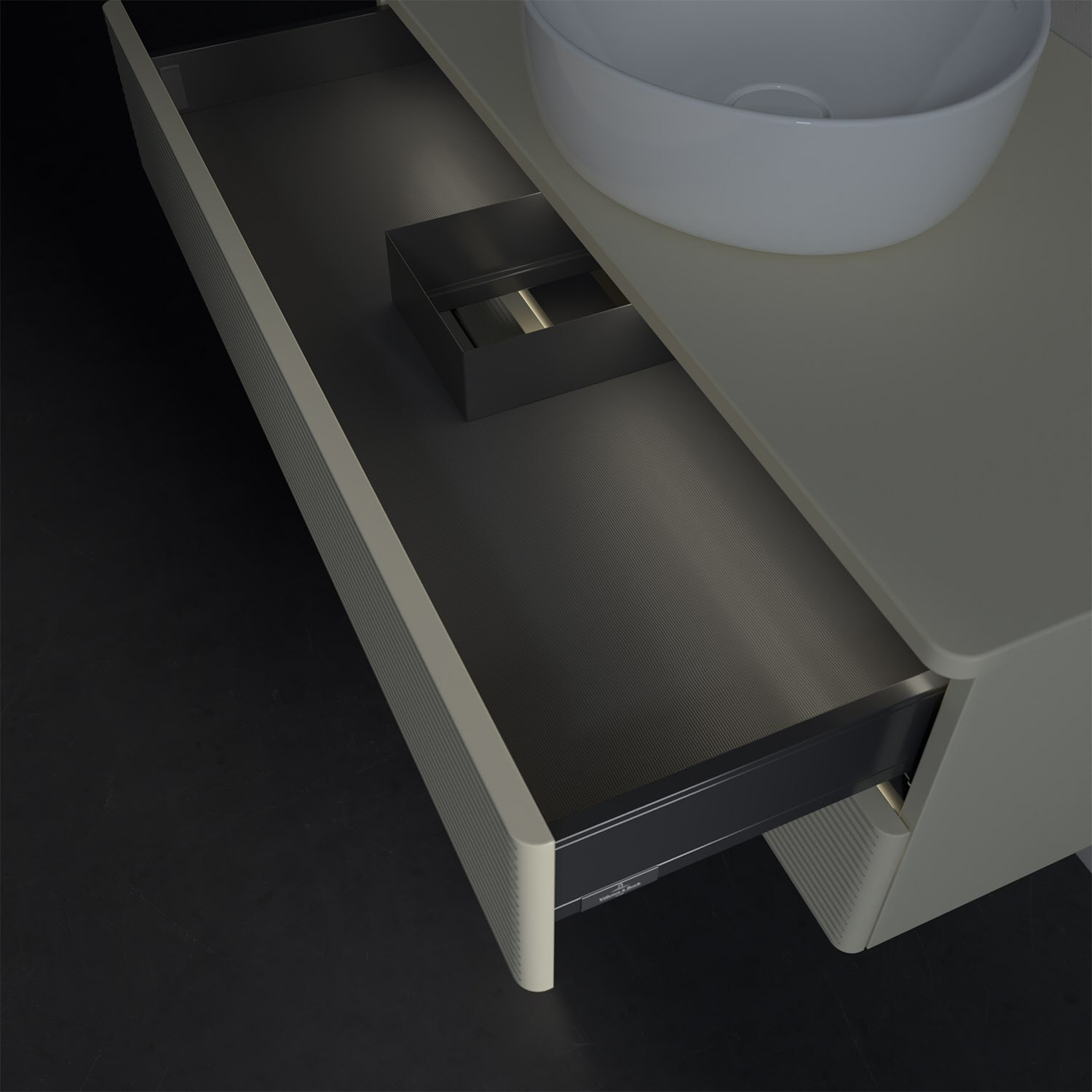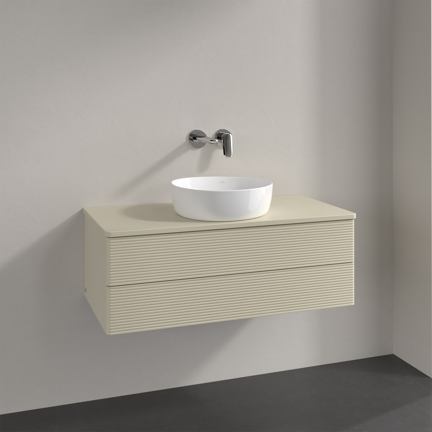 Villeroy & Boch Antao Waschbeckenunterschrank, 100 x 36 cm, 2 Auszüge mit LED-Licht, Front mit Struktur, ohne Hahnloch