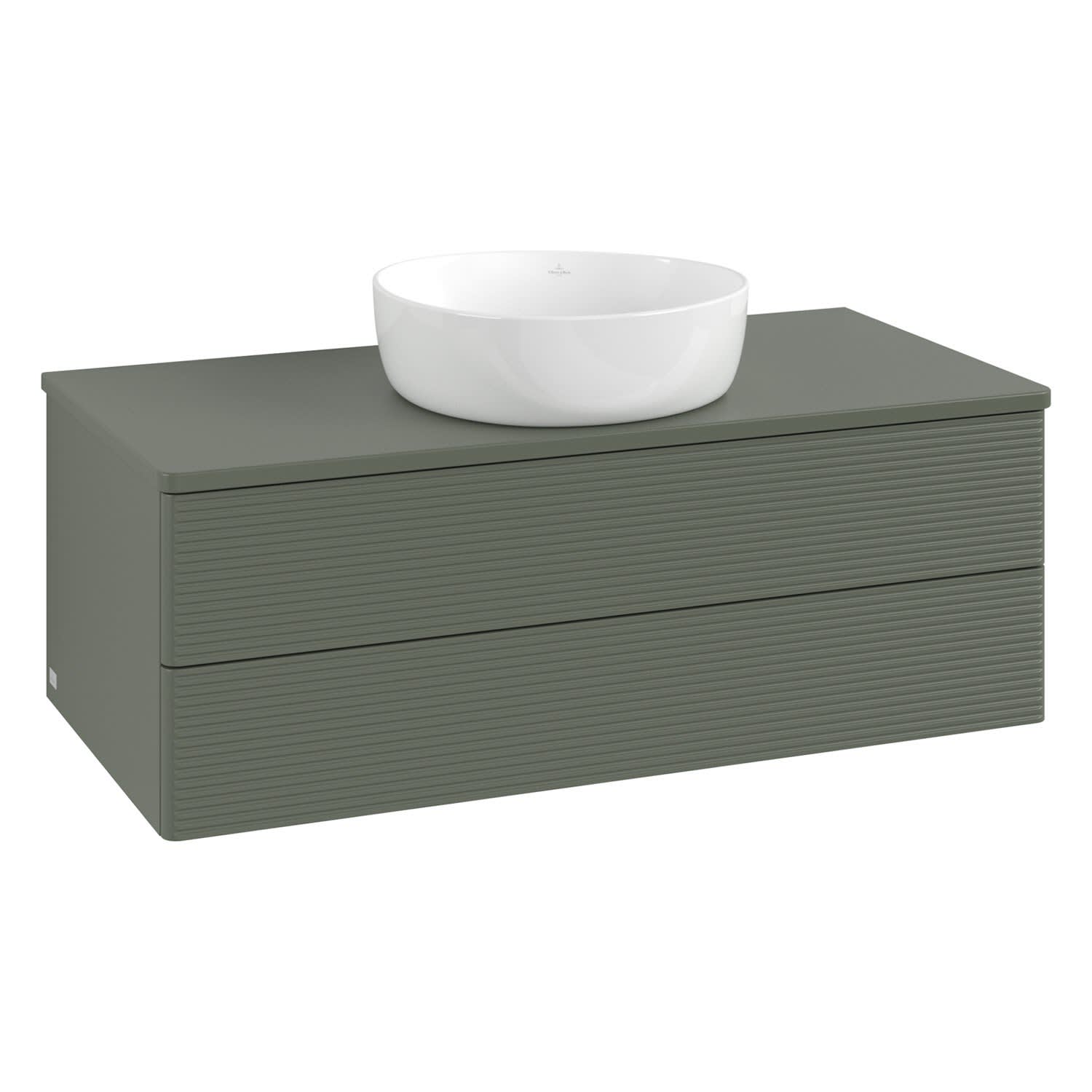 Villeroy & Boch Antao Waschbeckenunterschrank, 100 x 36 cm, 2 Auszüge mit LED-Licht, Front mit Struktur, ohne Hahnloch