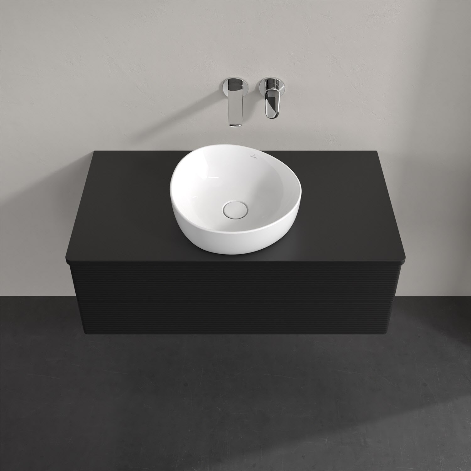 Für diesen Waschbeckenunterschrank stehen Ihnen Aufsatzwaschtische aus verschiedenen Serien zur Verfügung (siehe "Passliste" unter Downloads). Ein ausgewähltes Beispiel finden Sie im Zubehör. Den Waschtisch bitte separat mitbestellen.